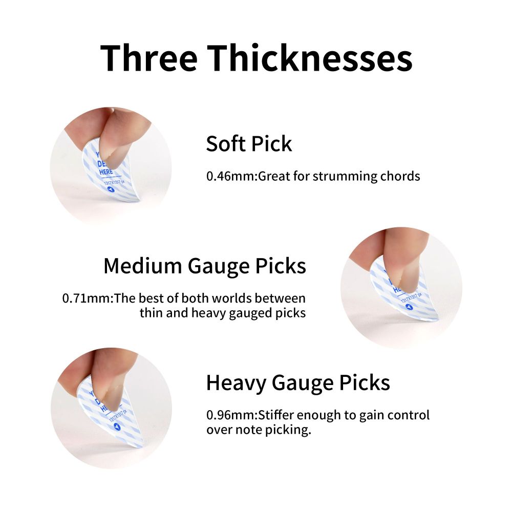 Product performance: comfortable hand feel, smooth edge, strong wear resistance, clear pattern, 3 thicknesses to choose from, giving you a different musical experience, the pick makes the guitar tone clear, the tone of the pick with different thicknesses is different, the thin one The paddle printing is bright and crisp, and the thick paddles sound rich and full.