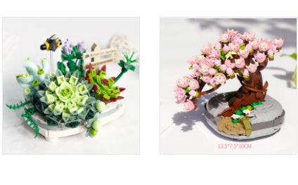 Assembled Building Blocks Toy Model, Succulent Potted Flower