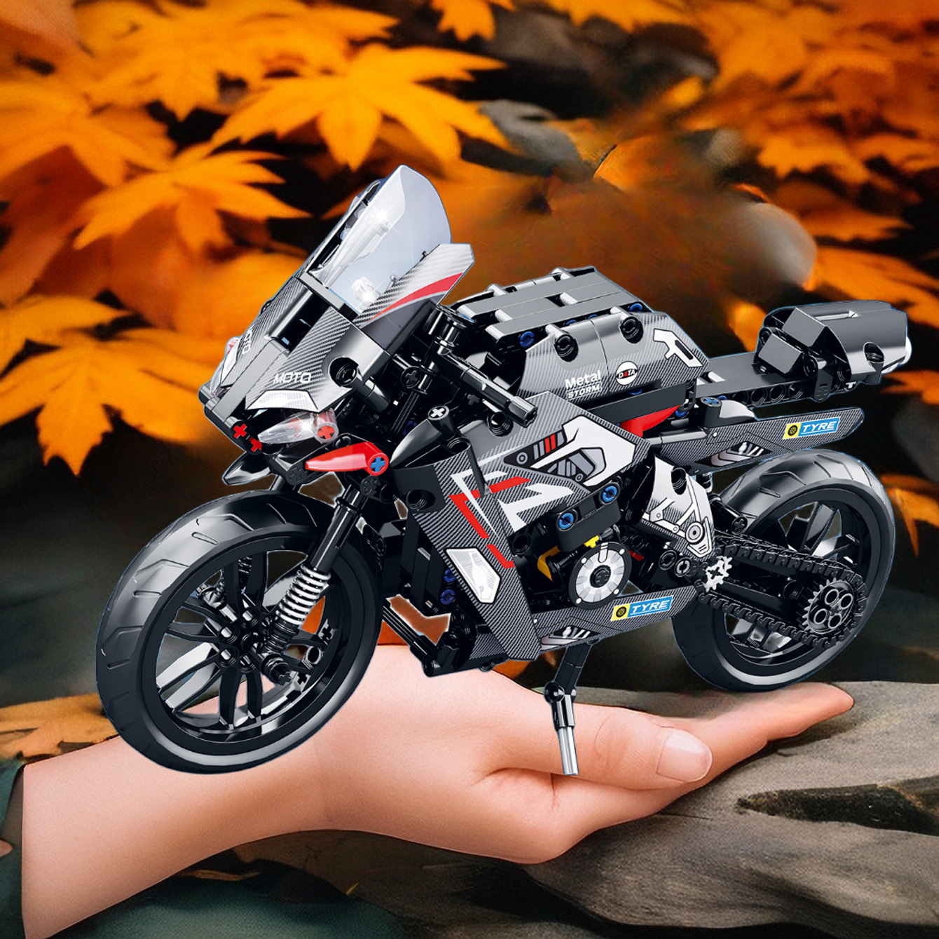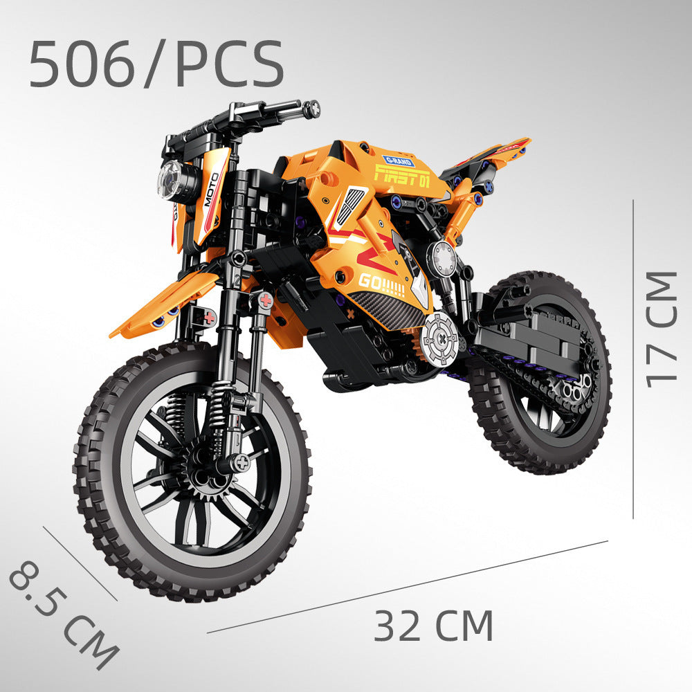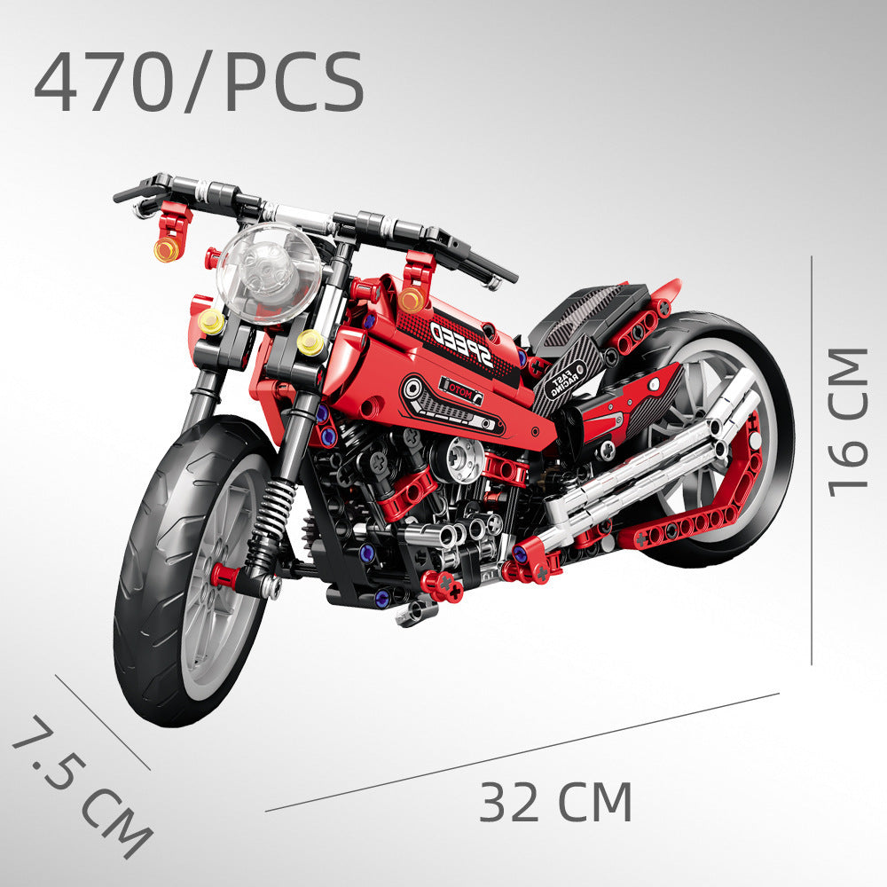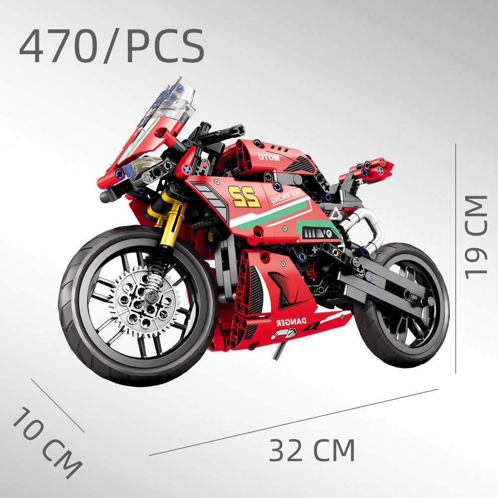 Assembled Motorcycle Boys' Puzzle, Small Particles Building Blocks Gift Box