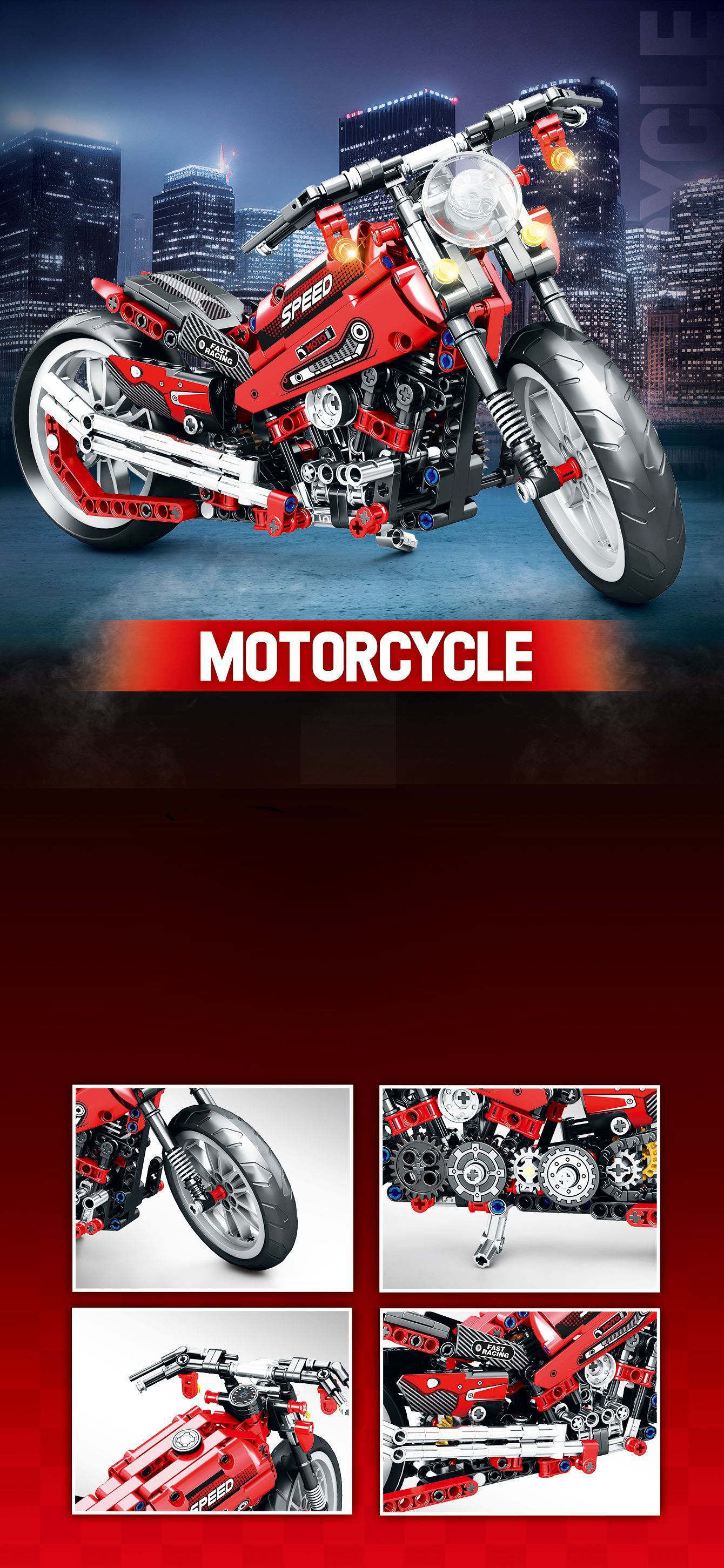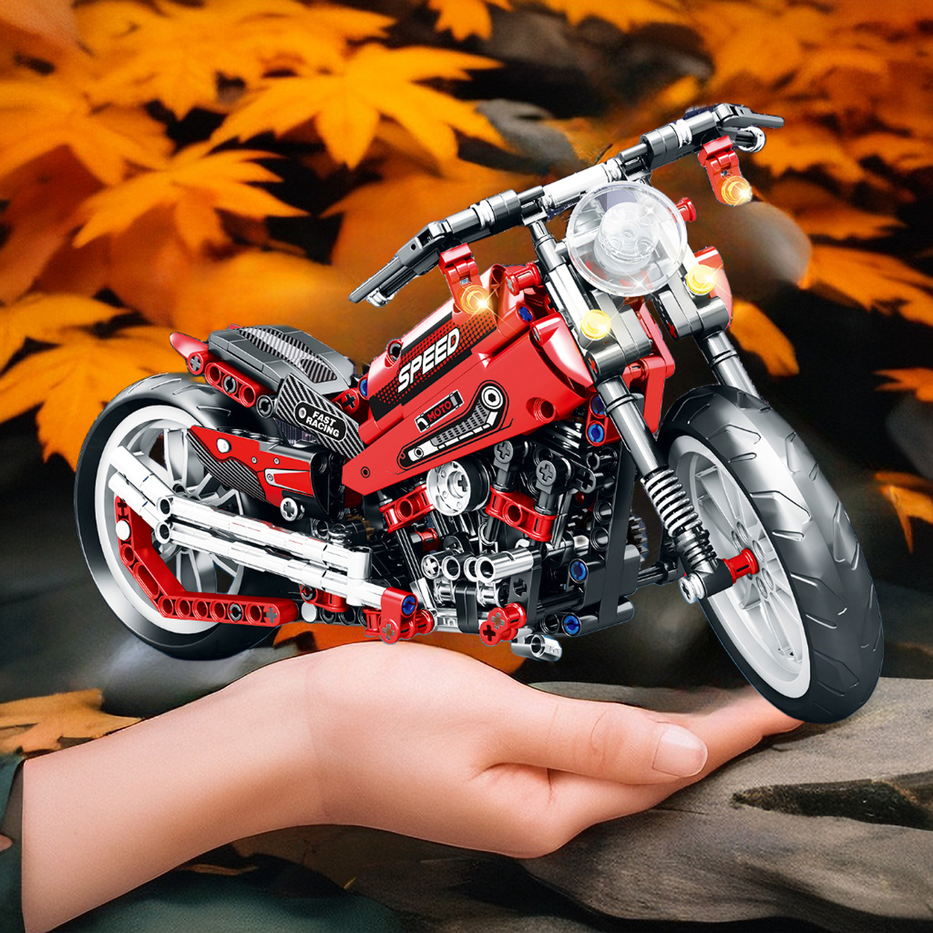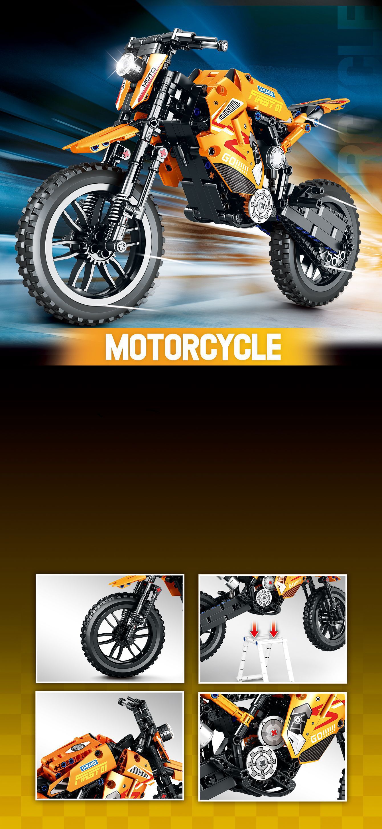 Assembled Motorcycle Boys' Puzzle, Small Particles Building Blocks Gift Box