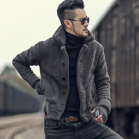 Autumn and Winter Men's Plush, Stand Collar Coat, Male Fleece Fur Jacket