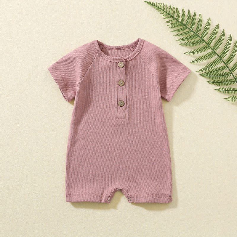 Baby Summer Short Sleeve Romper – Soft Cotton Button Bodysuit for Infants