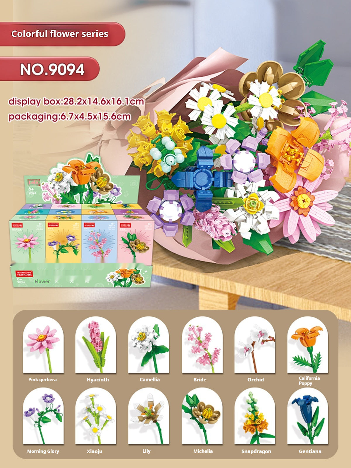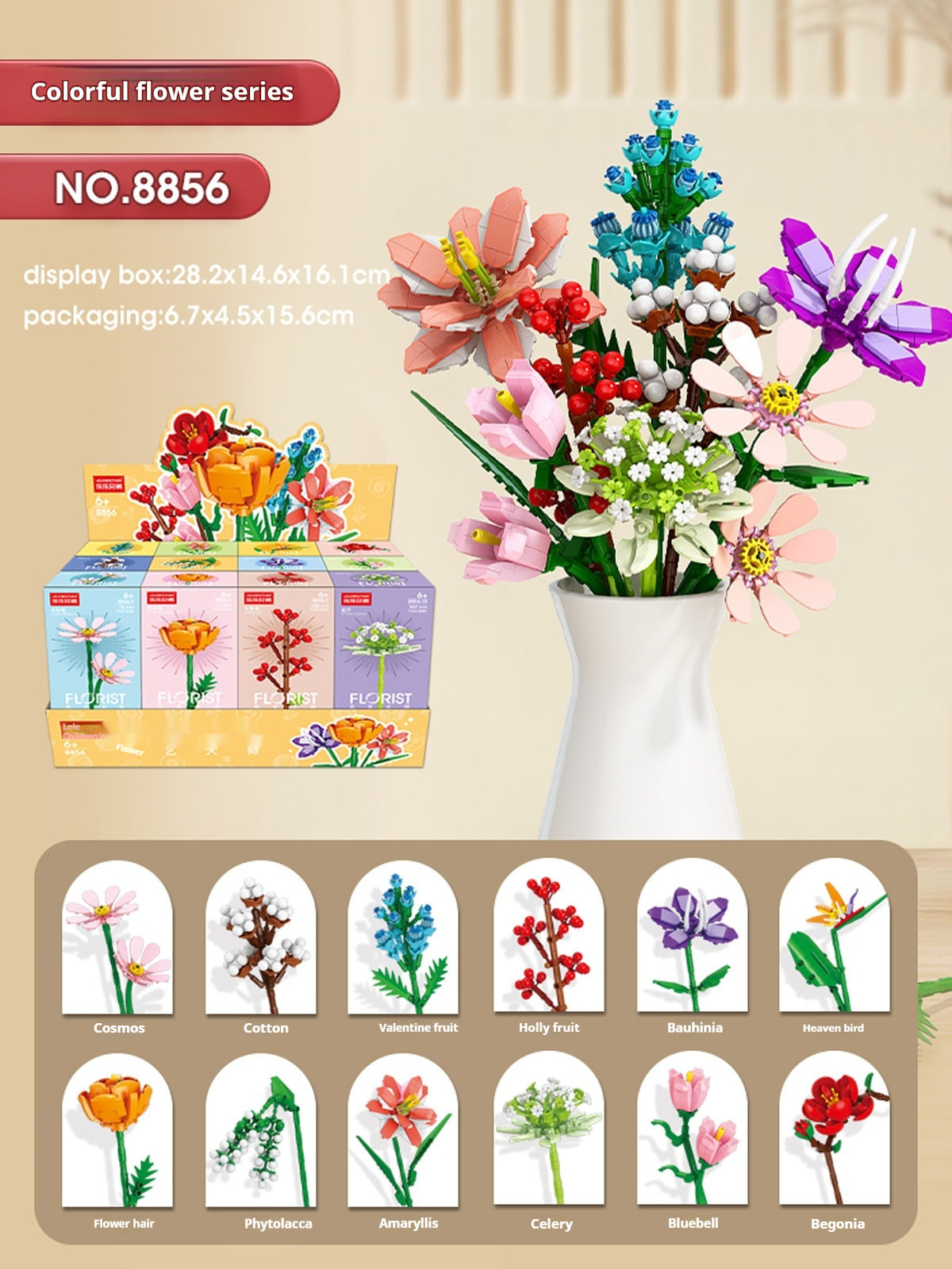 Color: flower plastic vase [random color] 1, round plastic vase [random color] 1, 8856 [12 flowers random one flower], 9093 [12 flowers random one flower]], 9094 [12 flowers random one flower], 8856-1 calliopsis [75 particles] Color box, 8856-2 Cotton [111 particles] Color box, 8856-3 lover fruit [120 particles] Color box, 8856-4 ranunculus Asiaticus [71 particles] Color box, 8856-5 Shanglu [93 particles] Color box, 8856-6 Hippeastrum flower [158 particles] Color box, 8856-7 Hollyberry [105 particles] Color box, 8856-8 Bauhinia [89 particles] Color box, 8856-9 Bird of Paradise [61 particles] Color box, 8856-10 star Qin [107 particles] Color box, 8856-11 Campanula [91 particles] Color box, 8856-12 seaweed [108 particles] Color box, 9093-1 Myosotis sylvatica [120 particles] Color box, 9093-2 pink rose [60 particles] Color box, 9093-3 Carnation [90 particles] Color box, 9093-4 Chrysanthemum [87 particles] Color box, 9093-5 Jasmine [108 particles] Color box, 9093-6 sunflower [150 particles] Color box, 9093-7 eustoma [112 particles] Color box, 9093-8 juice balcony [100 particles] Color box, 9093-9 purple tulip [88 particles] Color box, 9093-10 cuique [103 particles] Color box, 9093-11 ruimuguo [123 particles] Color box, 9093-12 blue hydrangea [107 particles] Color box, 9094-1 Pink African chrysanthemum [142 particles] Color box, 9094-2 Hyacinth [115 particles] Color box, 9094-3 Camellia [84 particles] Color box, 9094-4 morning glory [92 particles] Color box, 9094-5 little Daisy [105 particles] Color box, 9094-6 Lily [97 particles] Color box, 9094-7 Luo New Woman [245 particles] Color box, 9094-8 orchid [69 particles] Color box, 9094-9 Eschscholzia californica [71 particles] Color box, 9094-10 Michelia figo [105 particles] Color box, 9094-11 Antirrhinum [85 particles] Color box, 9094-12 gentian flowers [56 particles] Color box