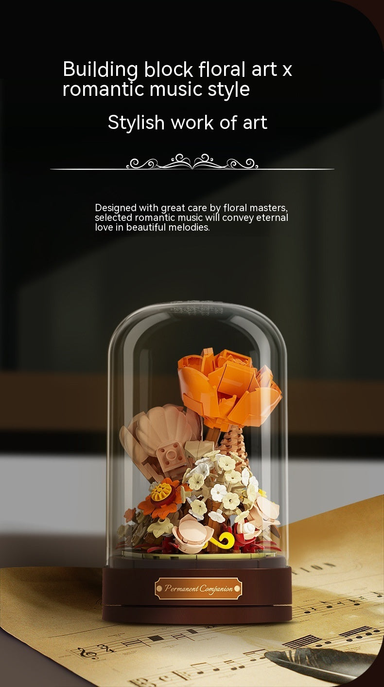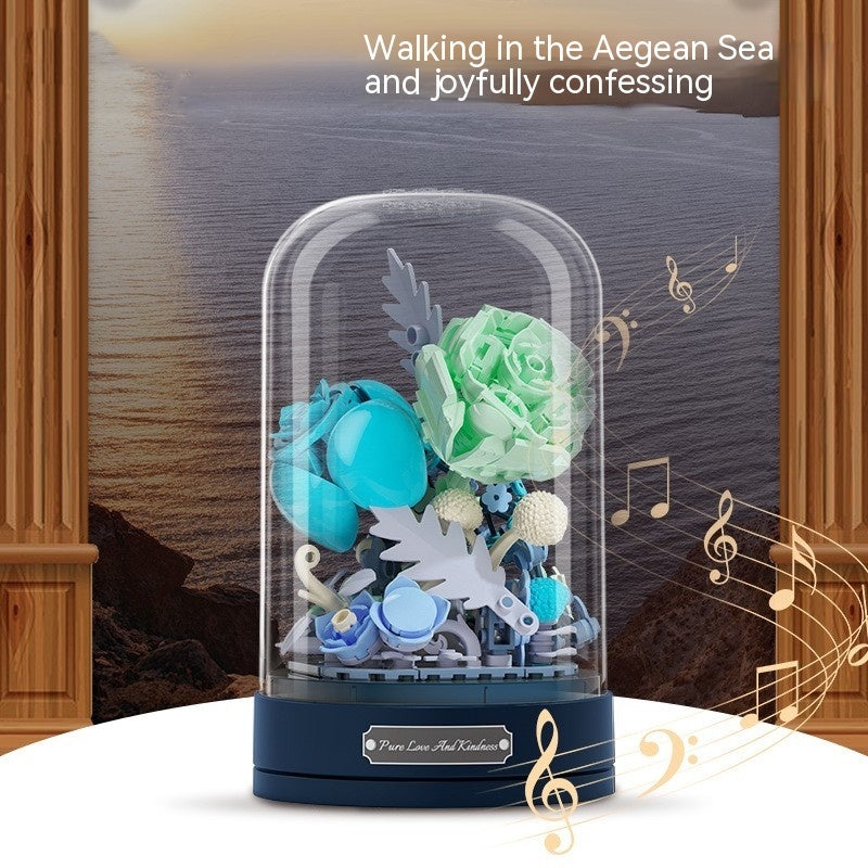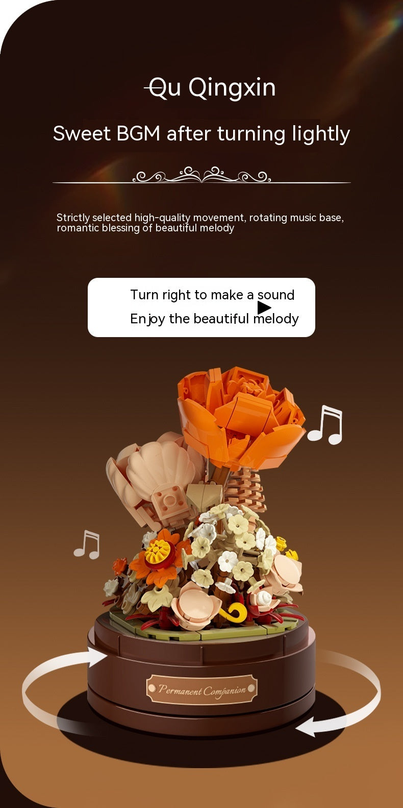 Building Blocks Flower Music Box, Valentine's Day Gift, Assembled Toys
