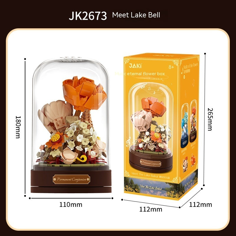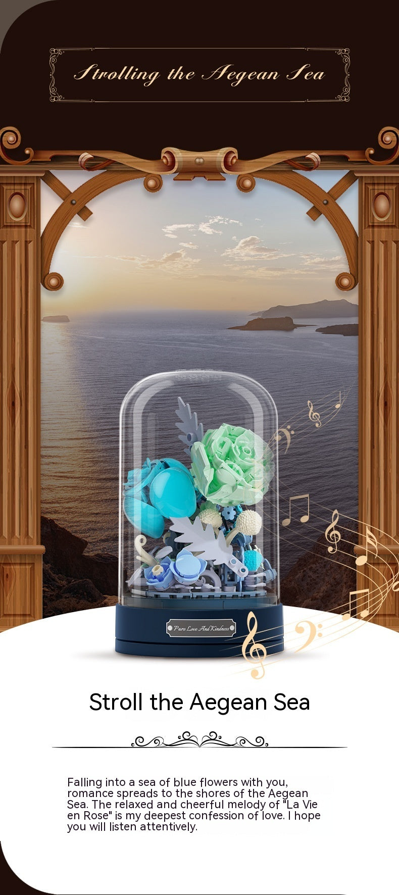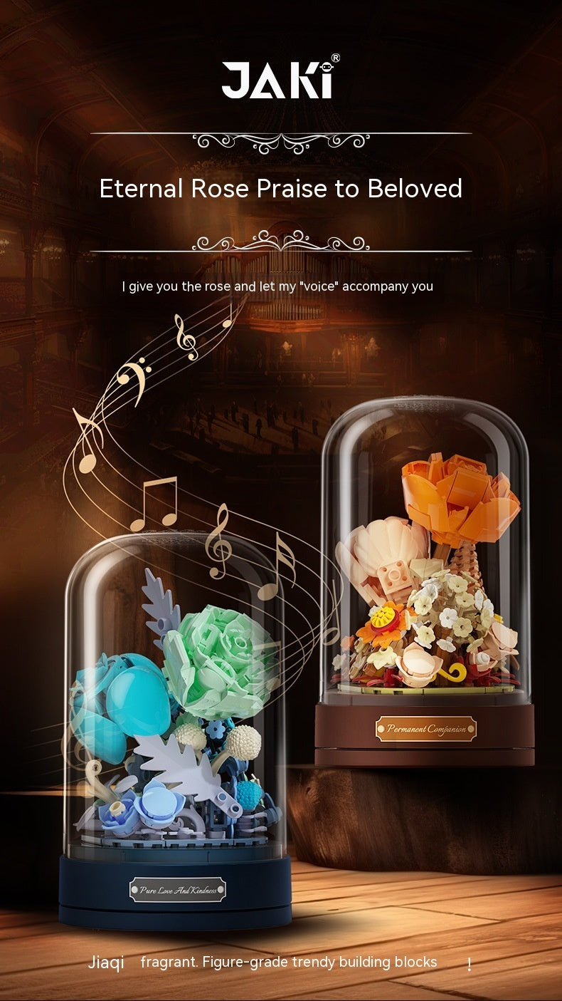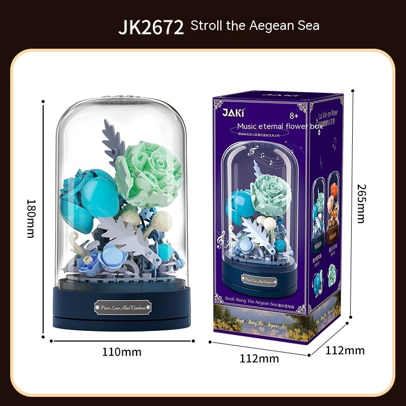 Building Blocks Flower Music Box, Valentine's Day Gift, Assembled Toys