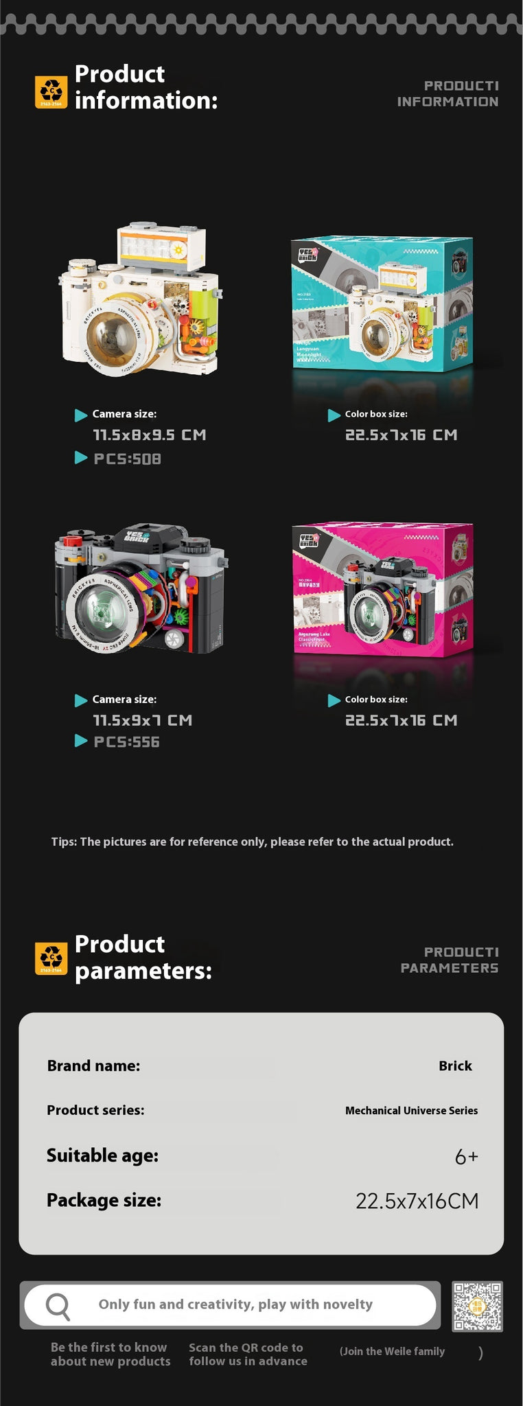 Color: 2163 retro camera-Moonlight White 508pcs, 2164 retro camera-classic black 556pcs