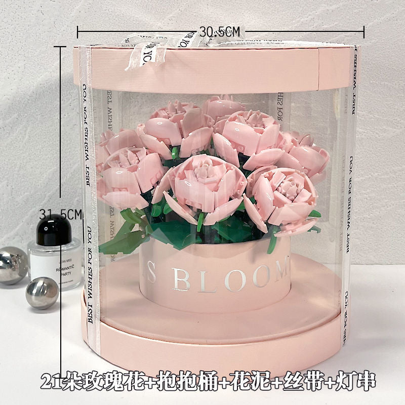 Building Blocks Rose Bouquet Flower Pot
