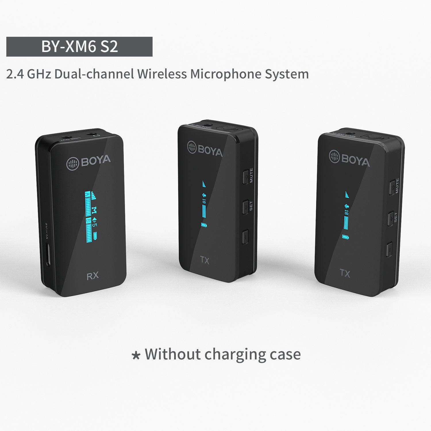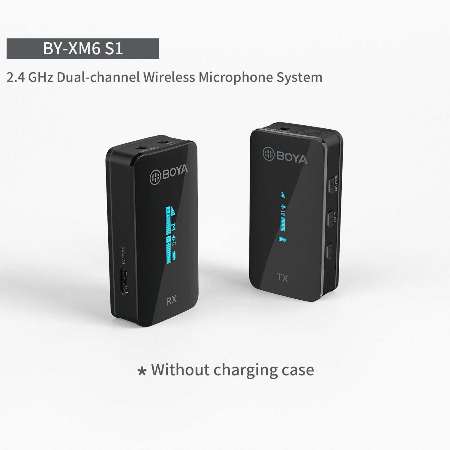 Color classification: BY-XM6 S1 one drag one wireless microphone,BY-XM6 S2 one drag two wireless microphone,BY-XM6 K1 one drag one wireless microphone (including charging case), BY-XM6 K2 one drag two wireless microphone (including charging case), BY-XM6 S1-mini,BY-XM6 S21-mini,BY-XM6 S21-Mini, BY-XM6-S3, BY-XM6-S4, By-XM6-S4, By-XM6-S4, BY-XM6-S5 (Android TYPE-C port), BY-XM6-S6 (Android TYPE-C port), BY-XM6-K3 (Apple lighting port) + Charging case, BY-XM6-K4 Drag-two wireless microphone (Apple lighting interface) + charging case,BY-XM6-K5 drag-two wireless microphone (Android TYPE-C interface) + charging case,BY-XM6-K6 drag-two wireless microphone (Android TYPE-C interface) + charging case ,BY-XM6(S1+S2)+ mixer combination one drag three wireless mics,BY-XM6(S2*2)+ mixer combination one drag four wireless mics,BY-XM6(S1+S2*2)+ mixer combination one drag five wireless mics,BY-XM6(S2*3)+ mixer combination one drag six wireless mics , Boya XM6 one drag one single charging box (without microphone), Boya XM6 one drag two single charging box (without microphone),TX transmitter.