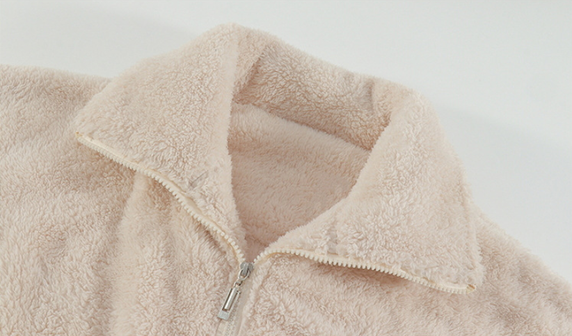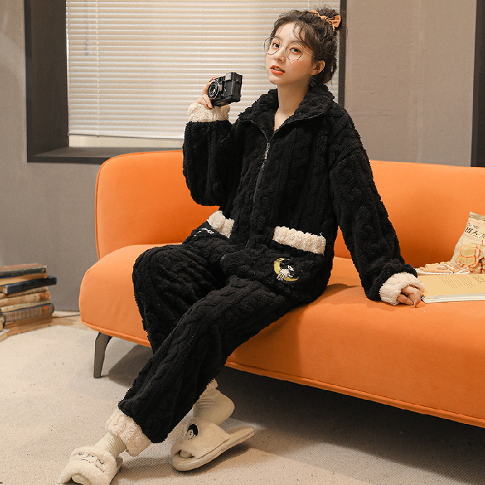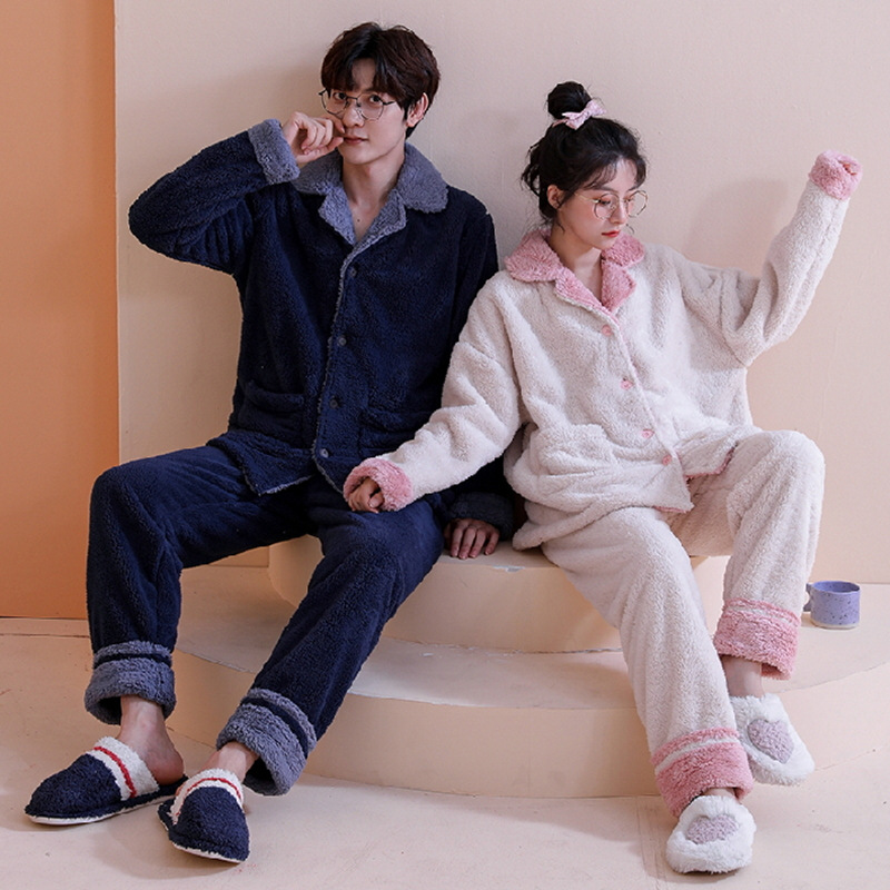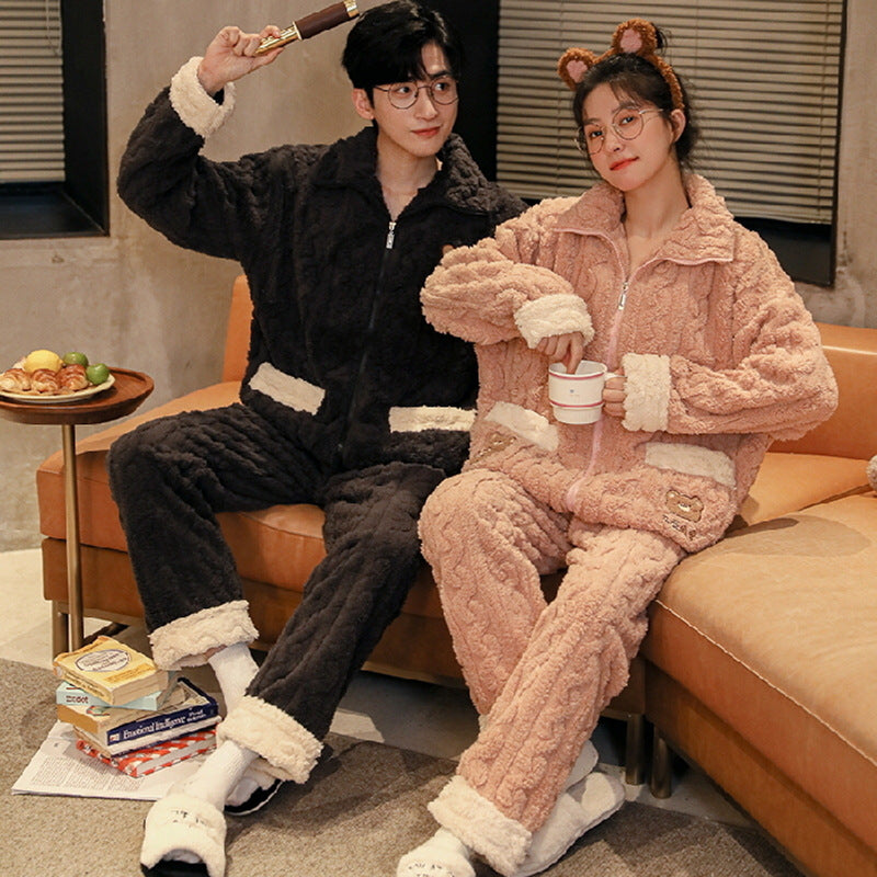 Couples' Autumn Winter Pajama Set, Thick Coral Fleece, K-fashion - Zippered Top and Matching Bottoms