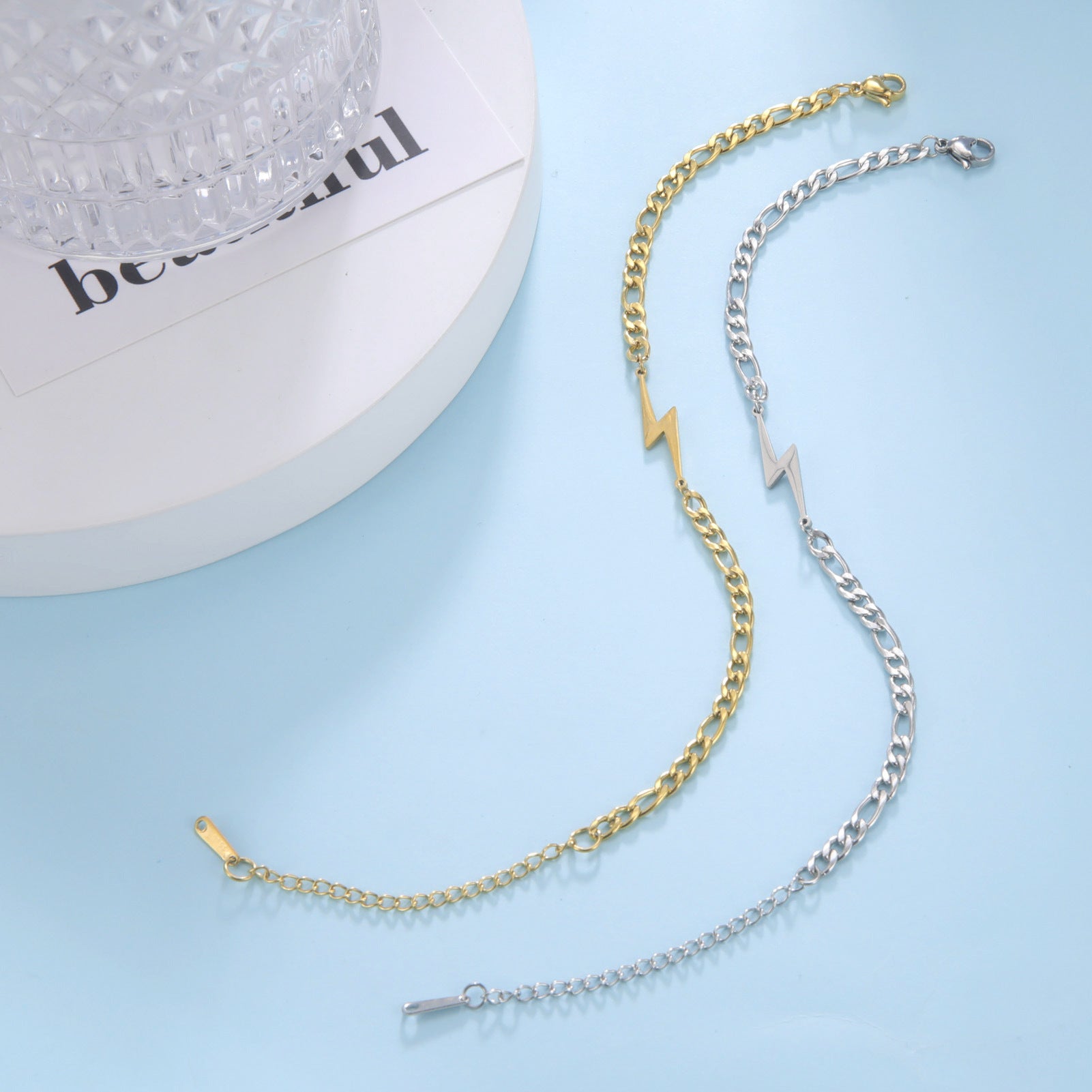 Double Hole Lightning Pendant, Titanium Steel Women's Bracelet