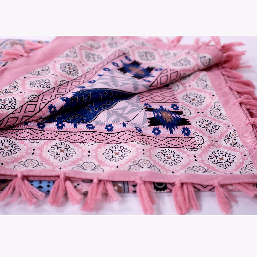 Ethnic Style Jacquard Square Scarf with Fringe