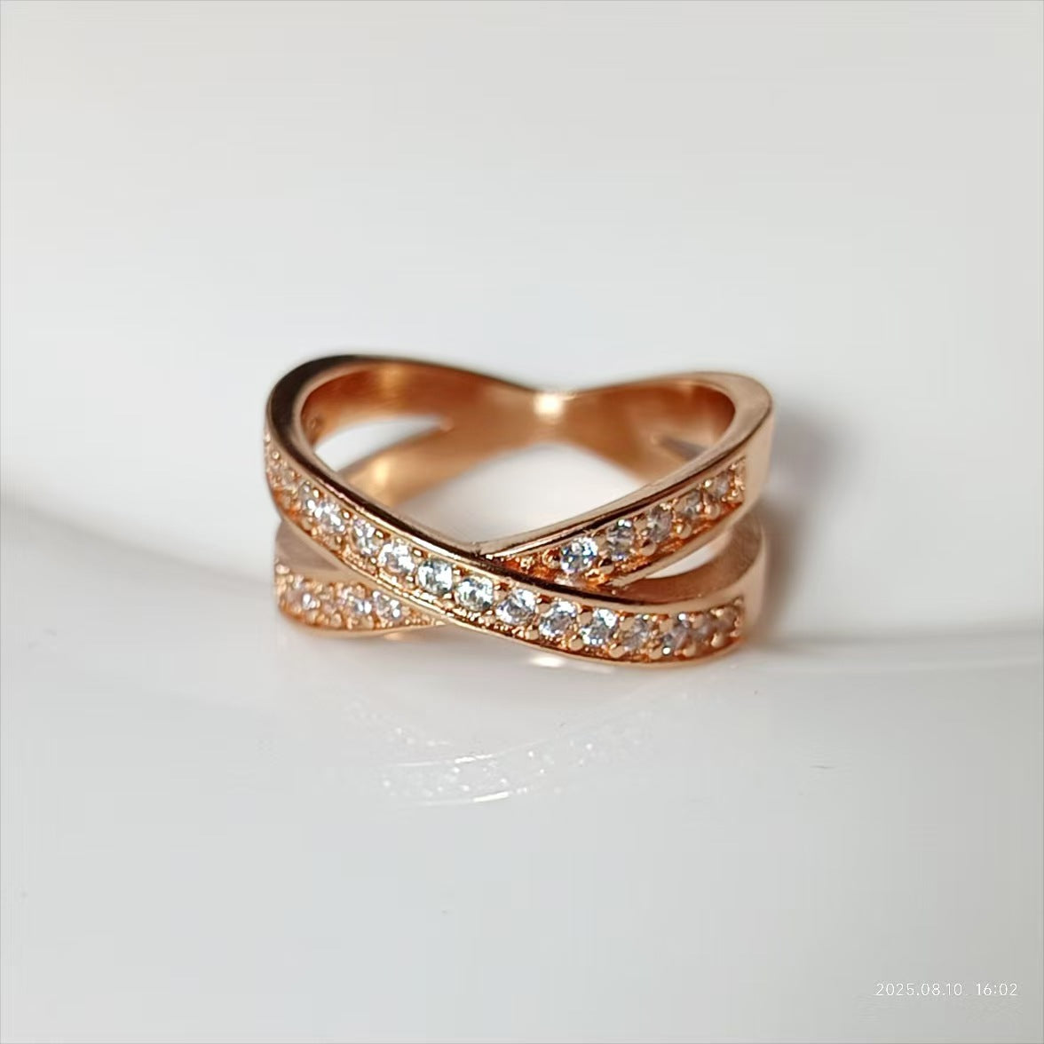 European and American Metal Cross Micro-inlaid Zircon Ring
