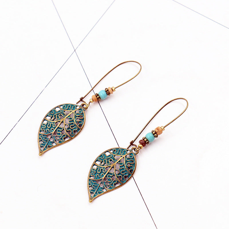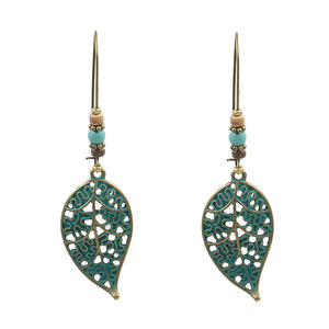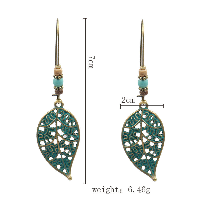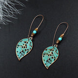 Fashion Retro Hollow Leaf Alloy Long Earrings