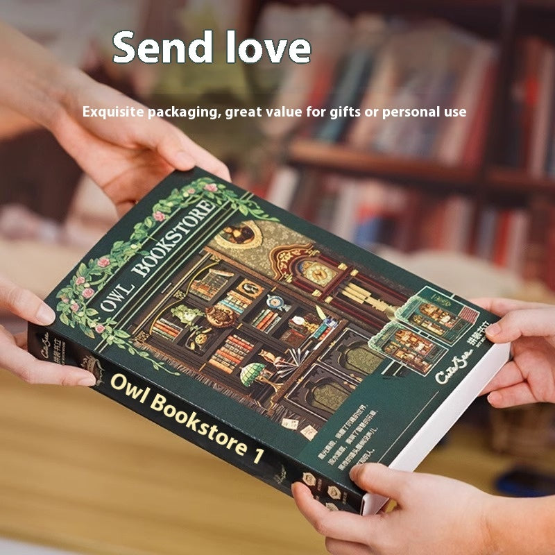 Handmade DIY Miniature 3D Cottage Model, Assembly Book Stand
