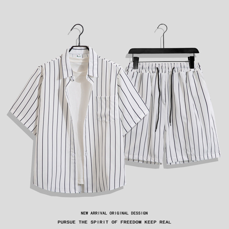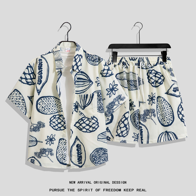 Hong Kong Style Retro Short Sleeve Printed Shirt + Shorts Set