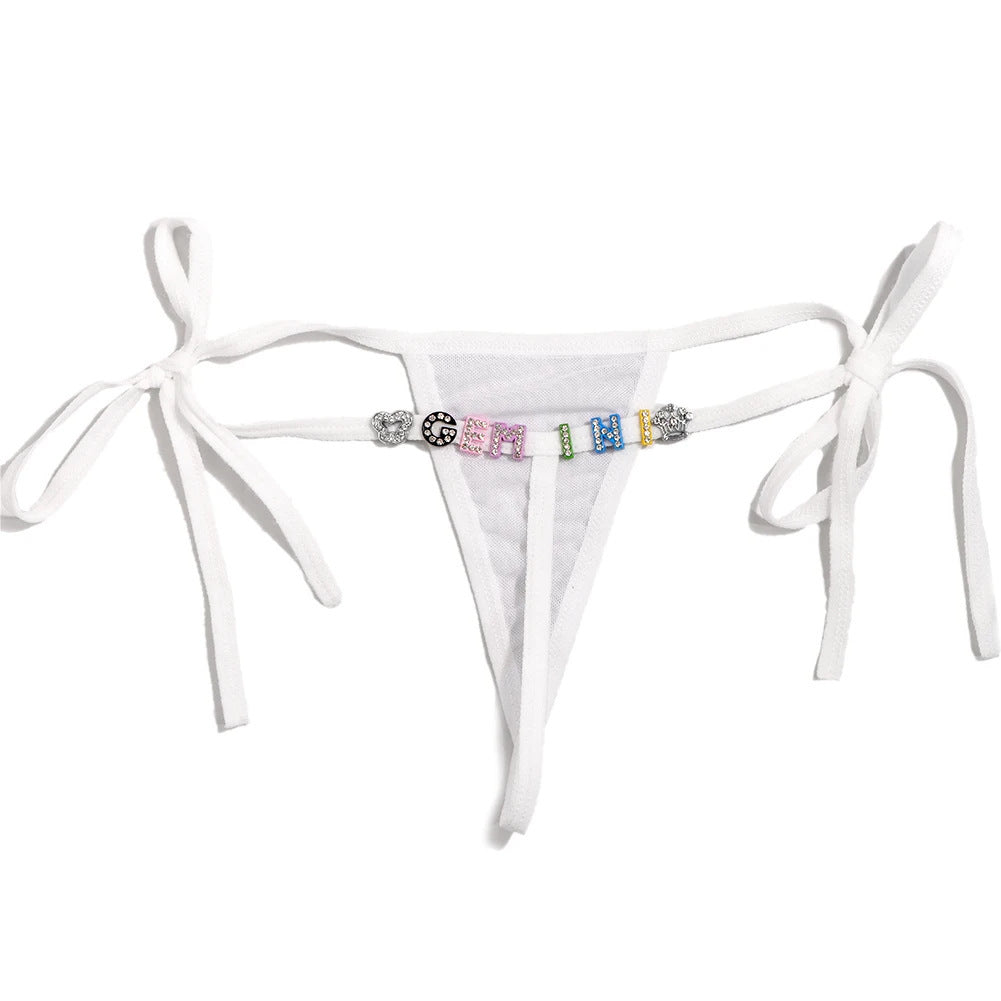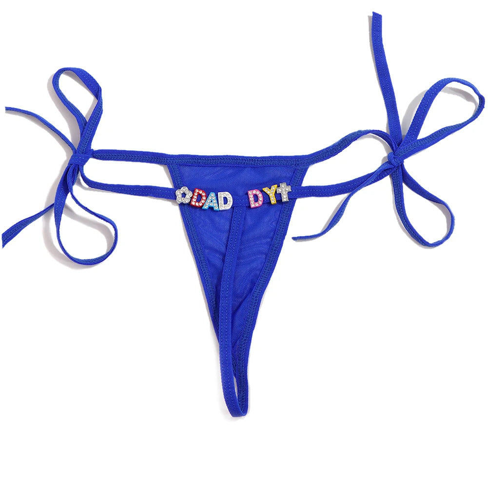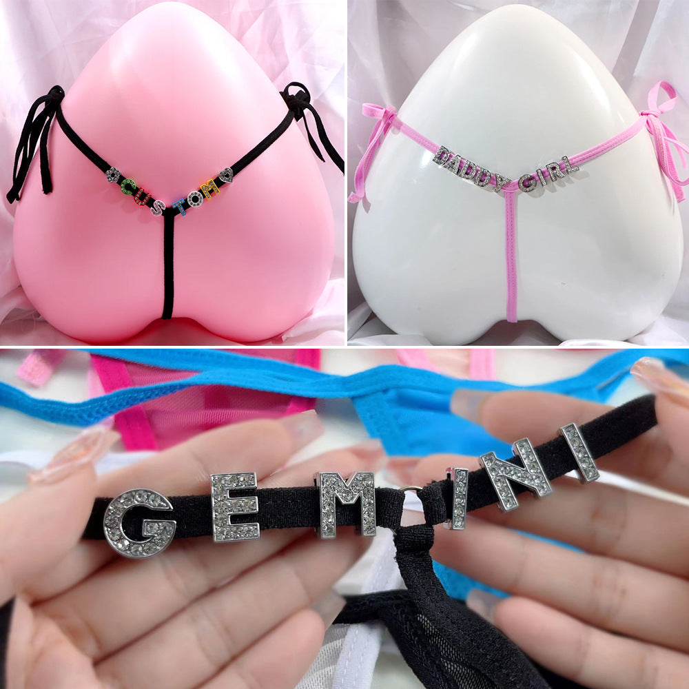 Lace Transparent Rhinestone Alphabet Panties (Pack of 2)