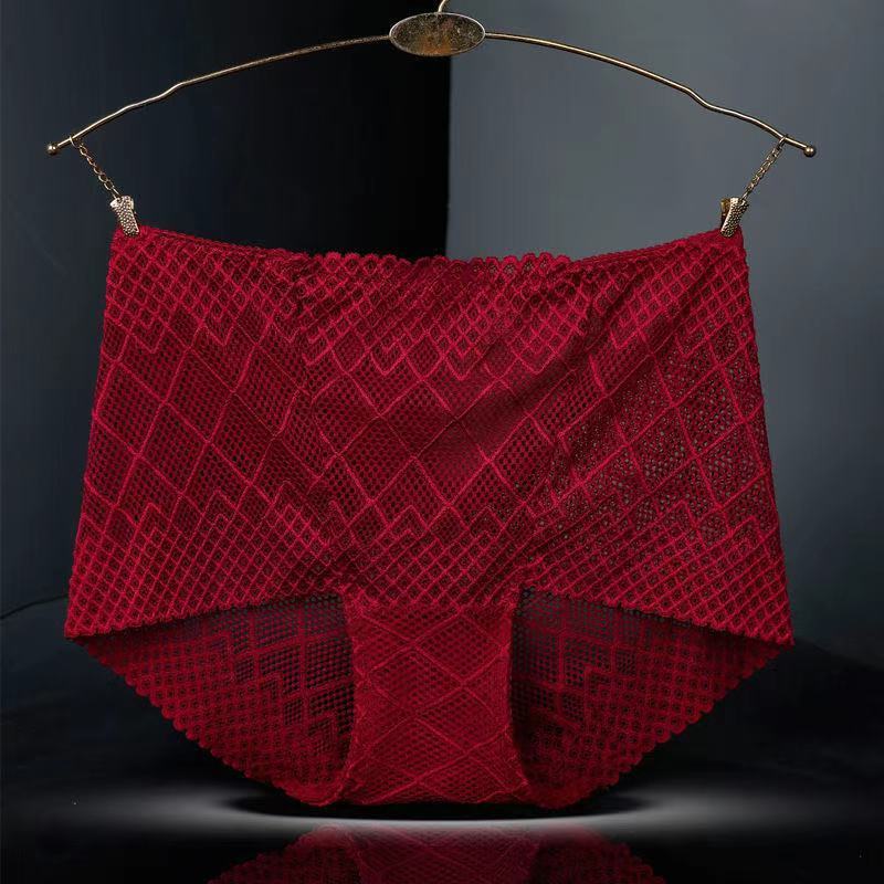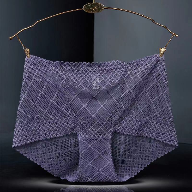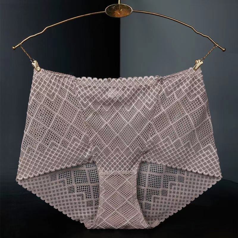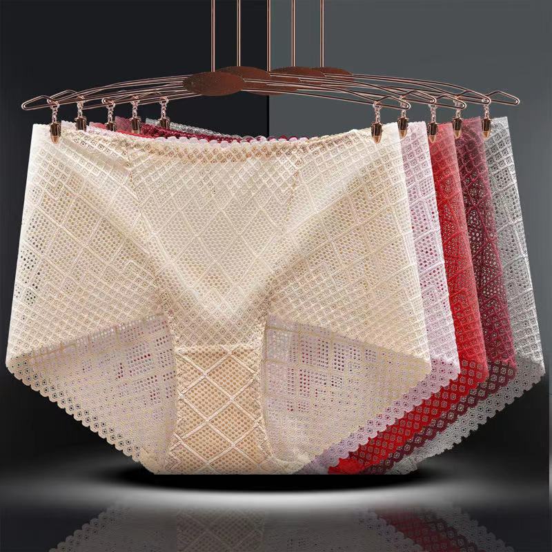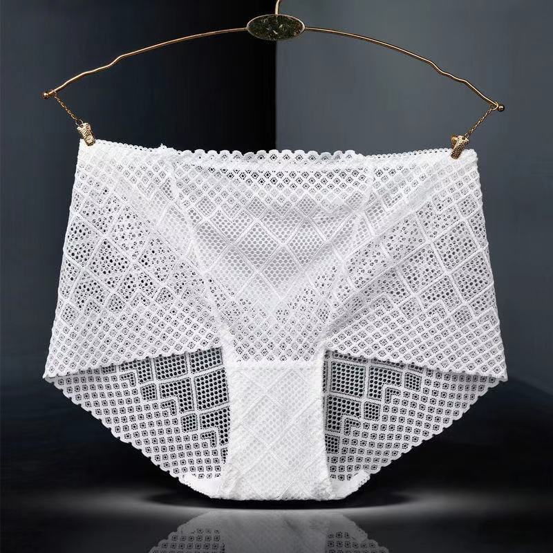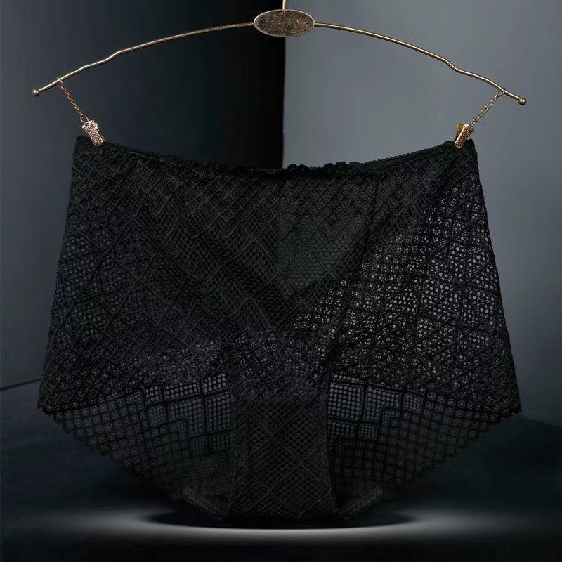 Large Size Mid-waist Lace Ladies' Panties, Sexy Mesh Transparent Antibacterial Cotton Crotch, Breathable Fat Hips Briefs