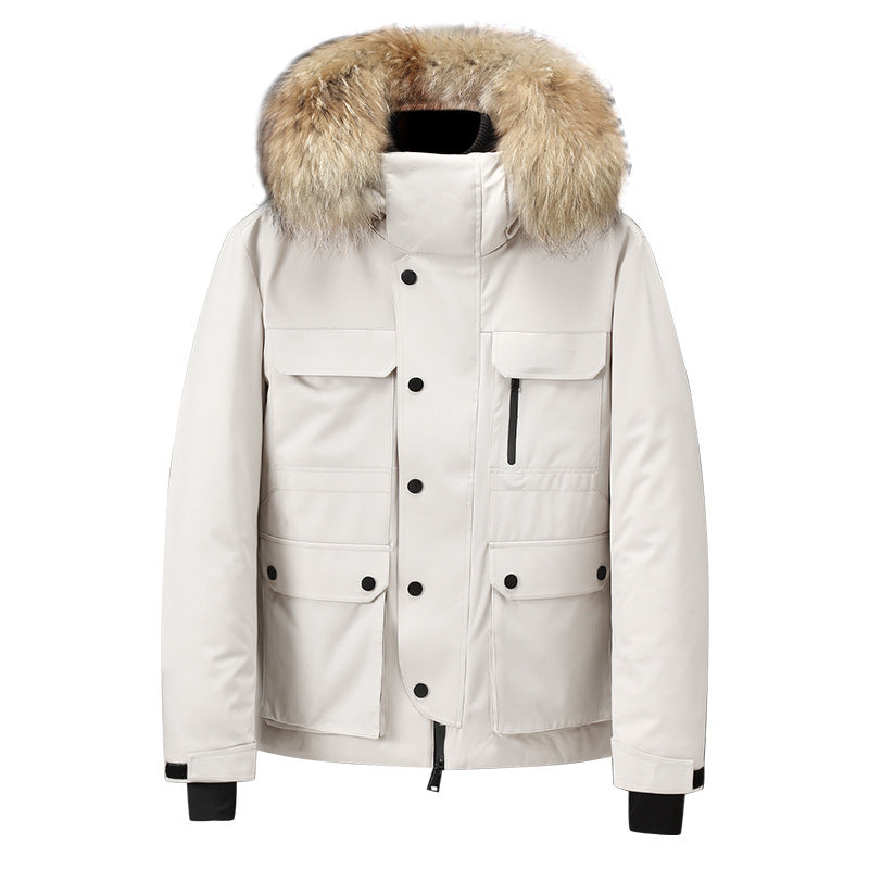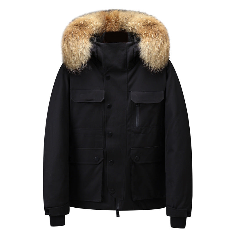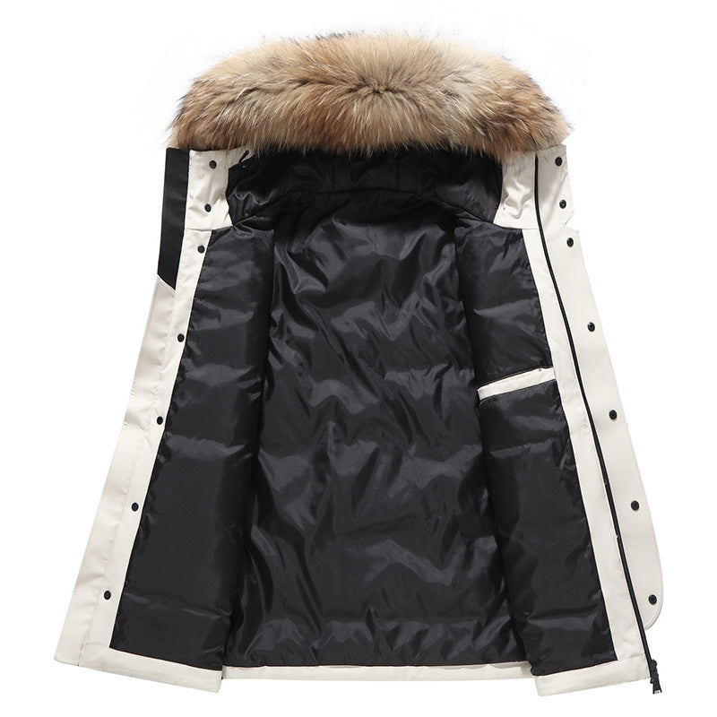 Men's Hooded Down Jacket, Thick Warm Coat with Fur Collar