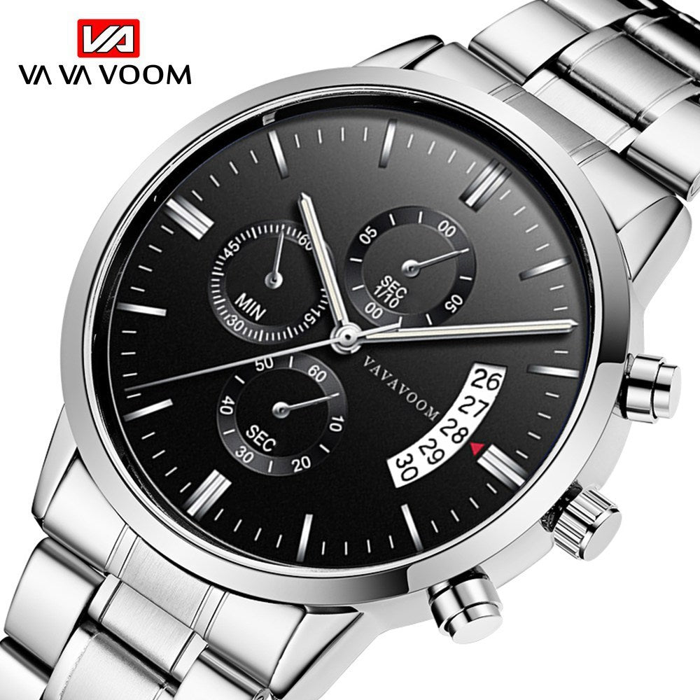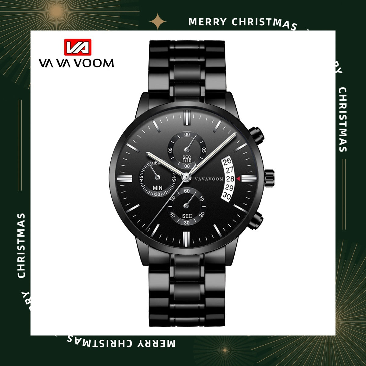 Men's Waterproof Black Fine Steel with Business Casual Calendar Quartz Watch