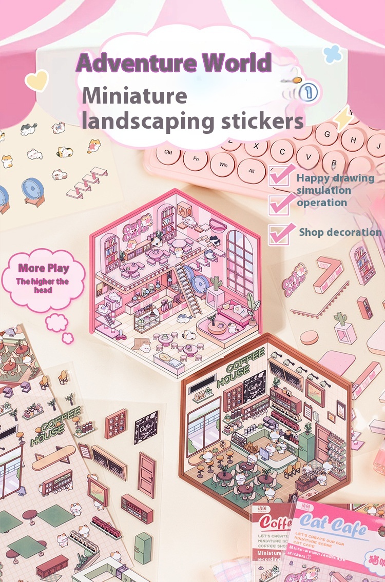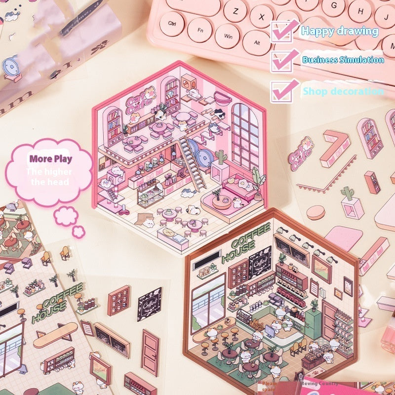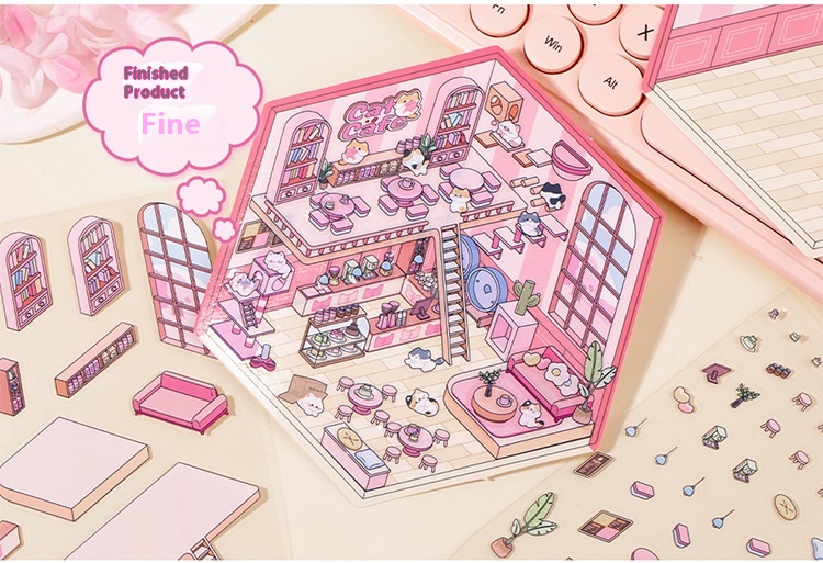 Miniature 3D Cottage Scene DIY Journal Stickers for Children