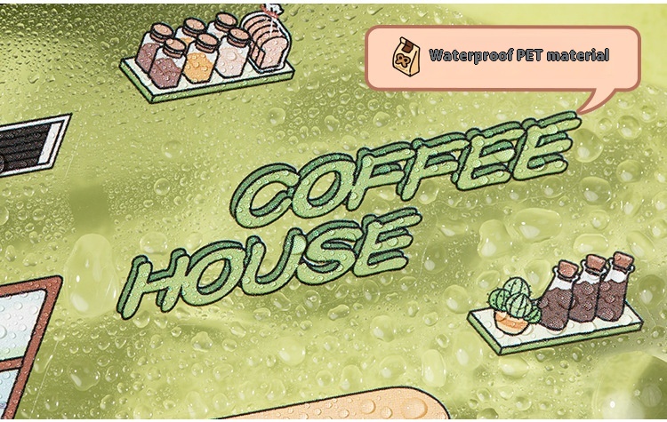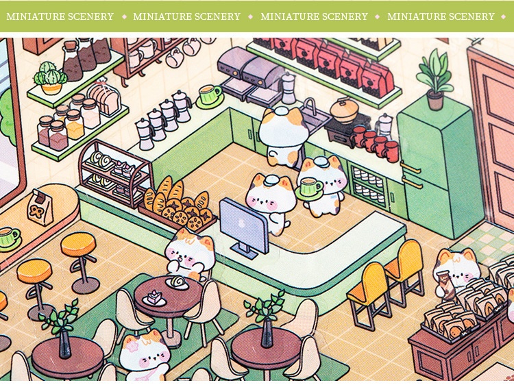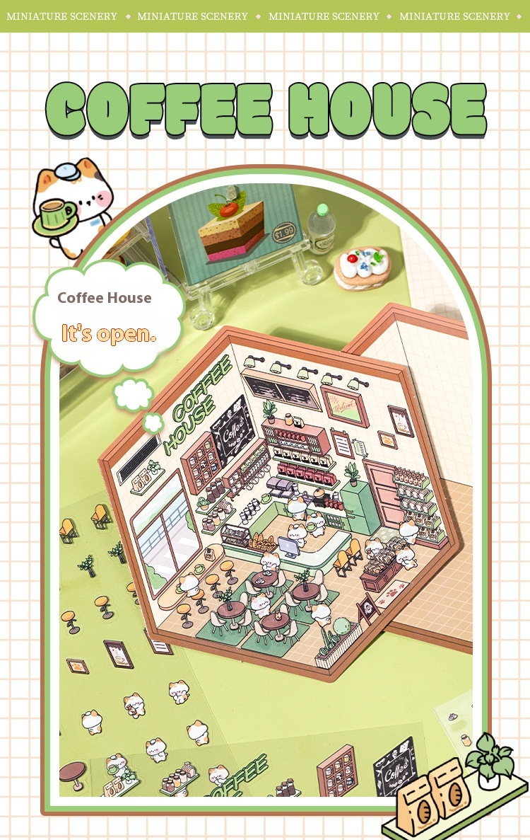 Color: Coffee House, cat coffee, supermarket, hamburger shop