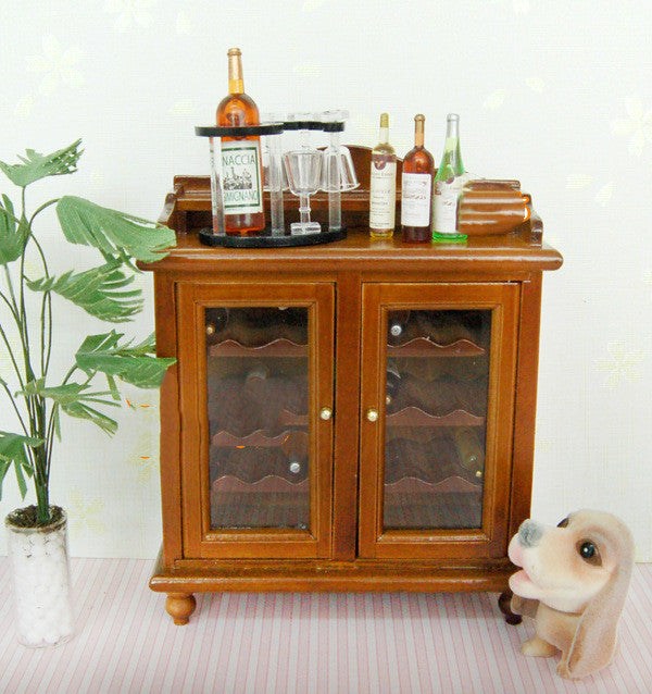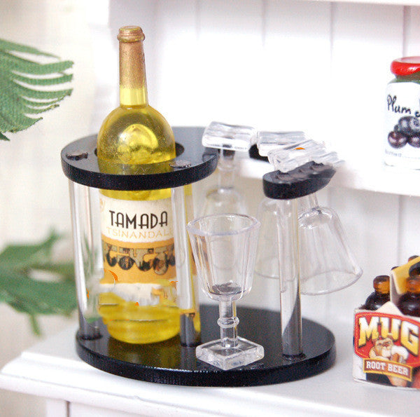 Size: Wine bottle DIA: 1.1cm H: 4.5cm; Cup: H: 2cm DIA: 1.1cm; Shelf: L: 4cm H: 3cmÂ