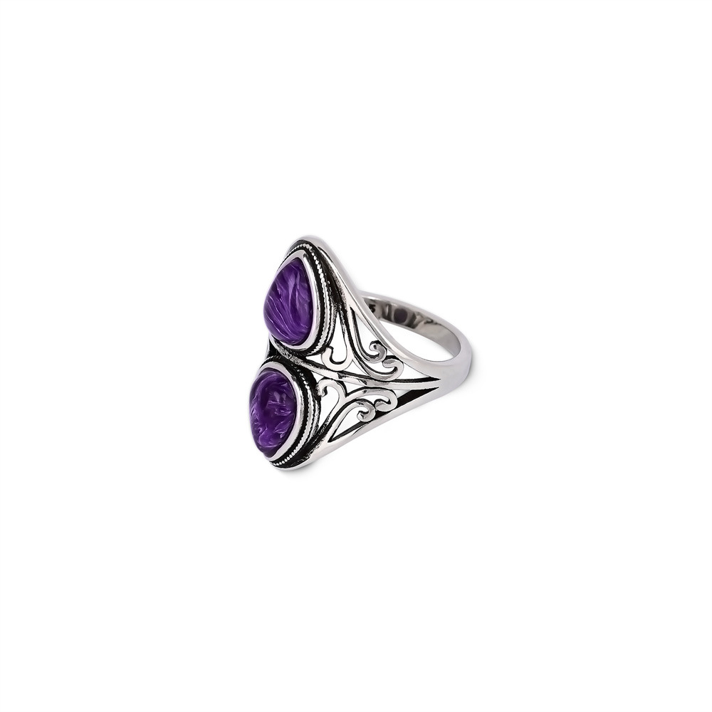 Natural Double Water Drop Amethyst Ring