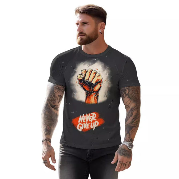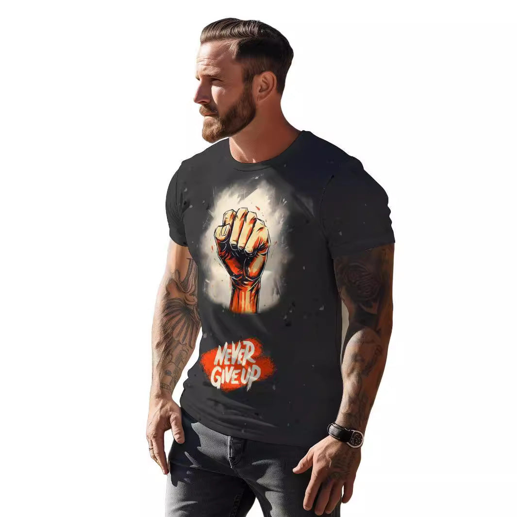 New European and American 3D Printing, Nevergiveup Loose, Men's Clothing Short Sleeve