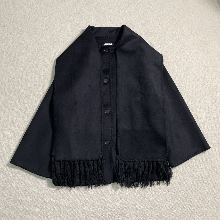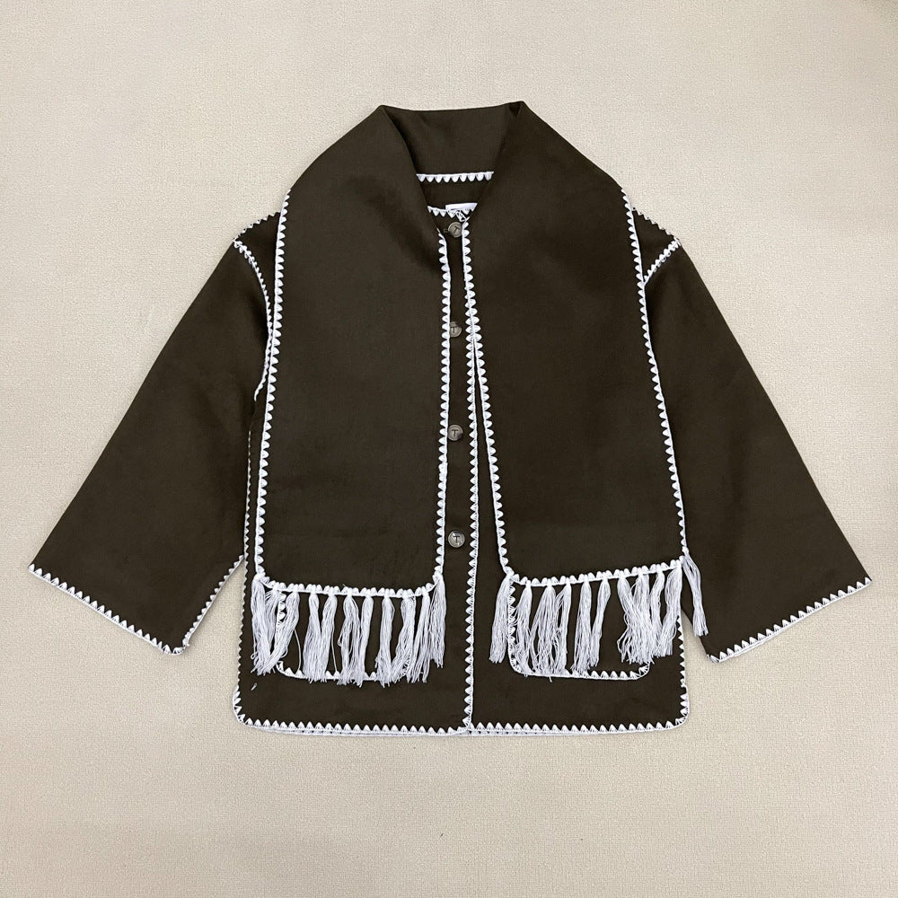 New Wool-blend Autumn/Winter Tassel Scarf and Collar Loose Woolen Coat