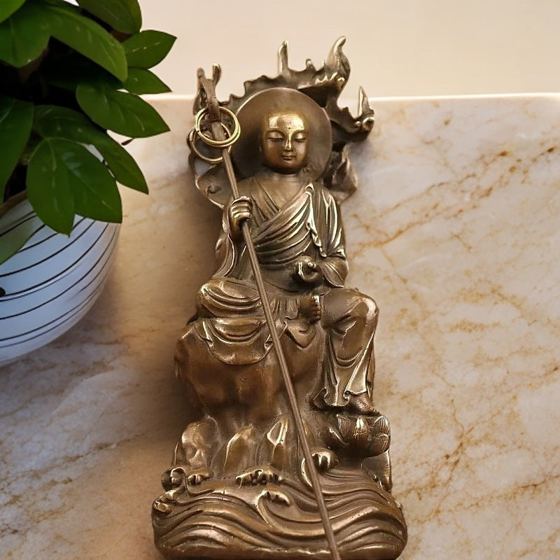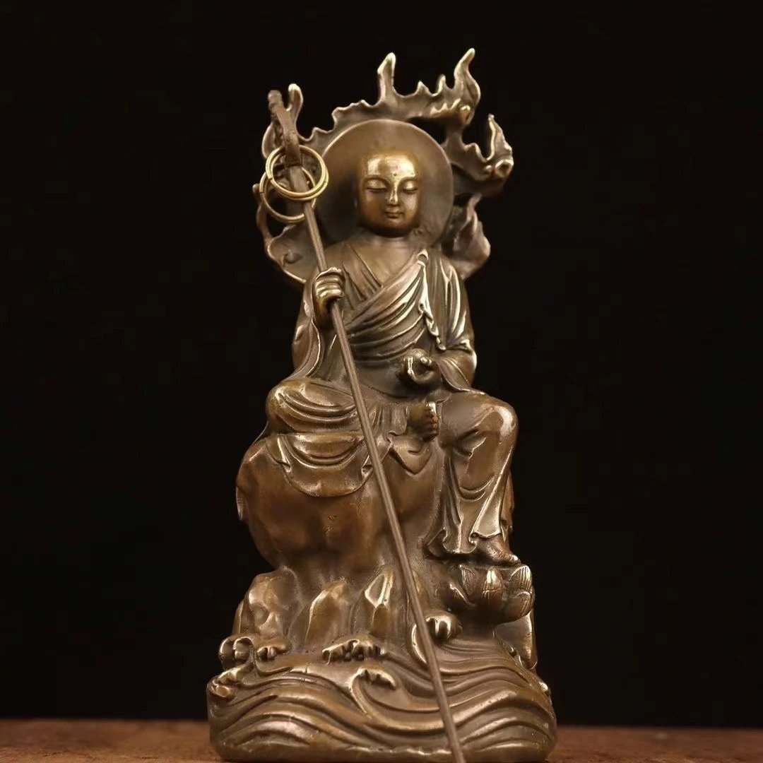 Pure Copper Tibetan King Buddha Statue Model with Flame Ornaments