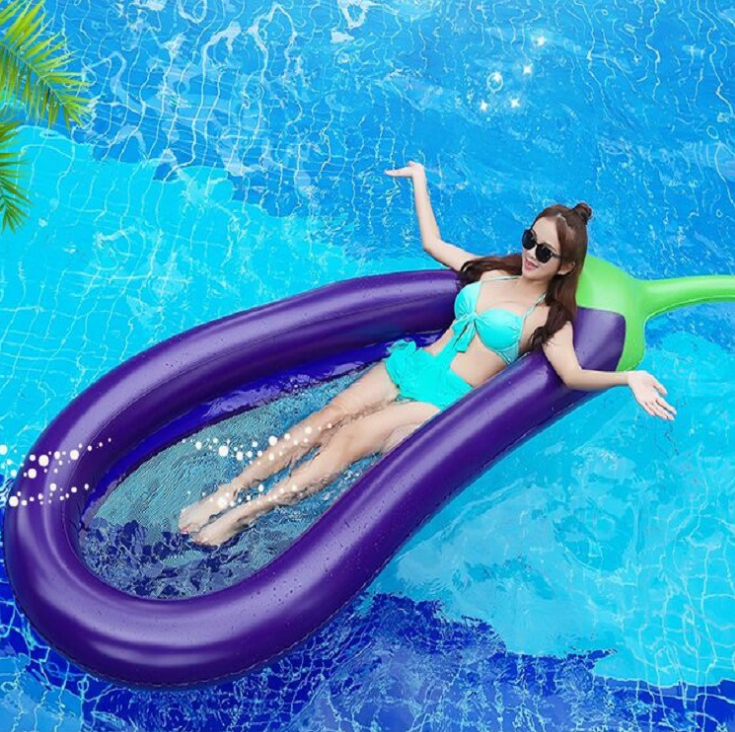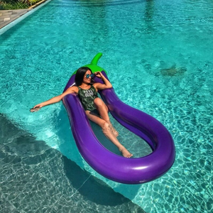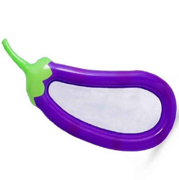 PVC large inflatable eggplant with net floating bed, purple inflatable eggplant recliner