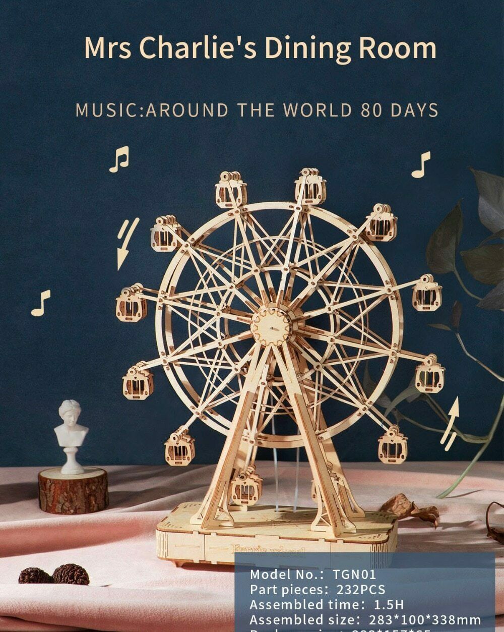 Ruotai Ruoke Wooden Assembled Model Toy, Building Block Music Box