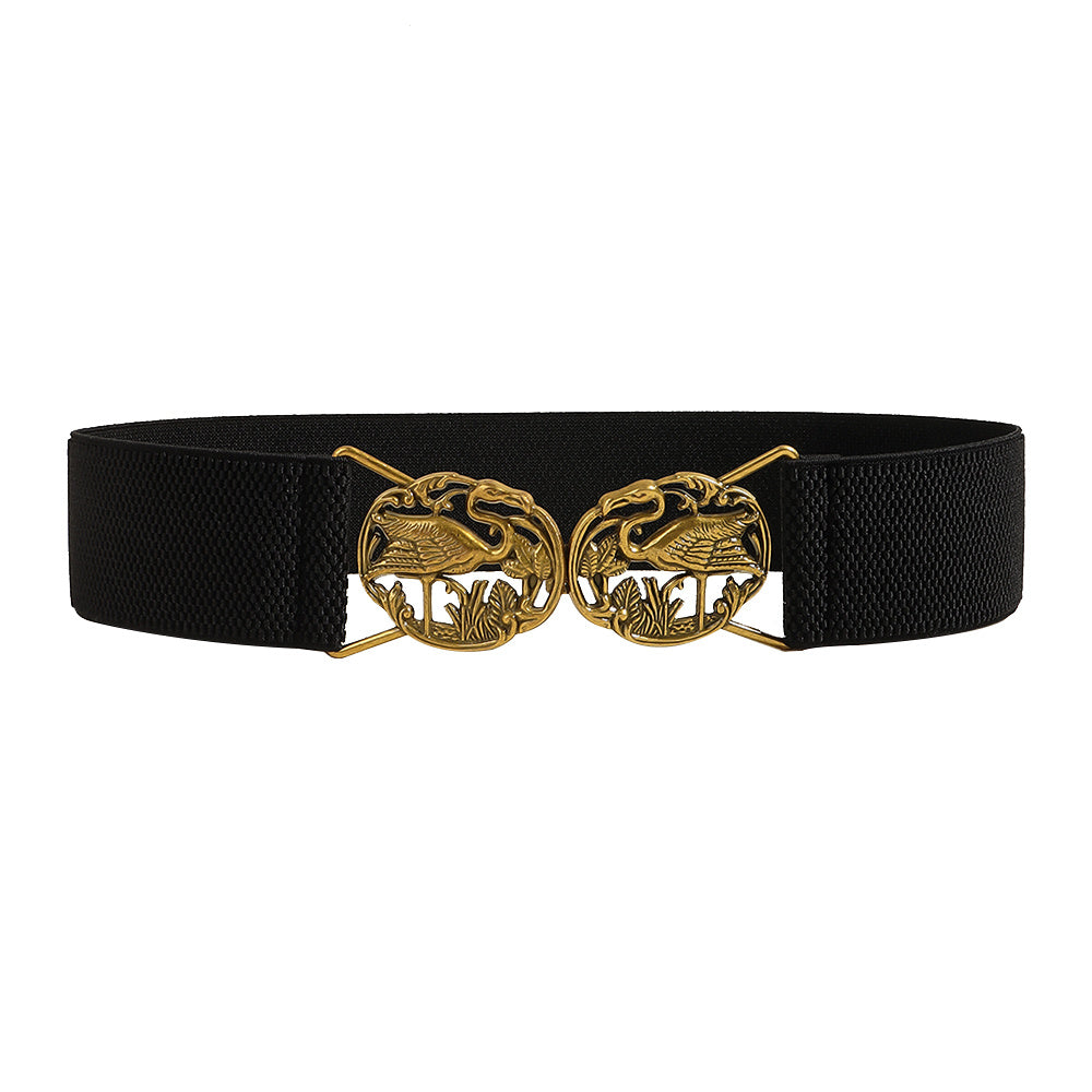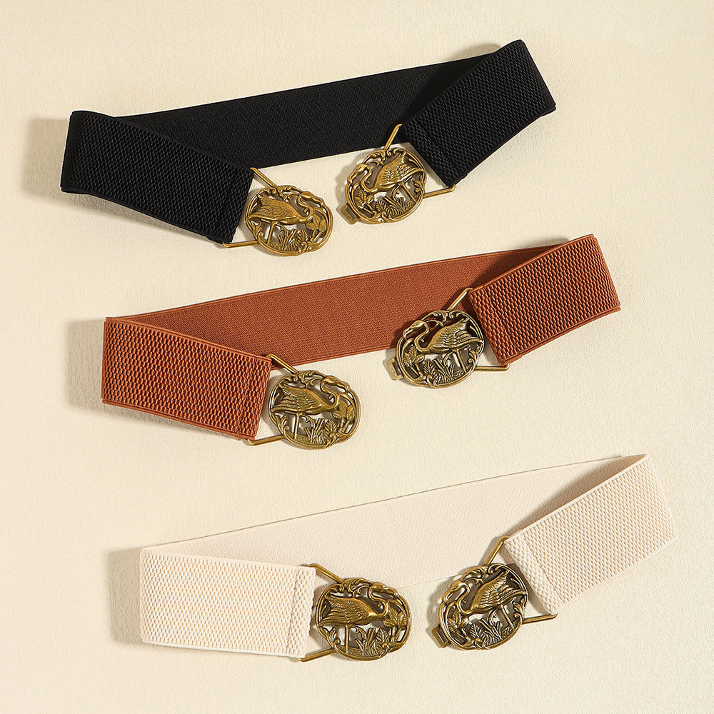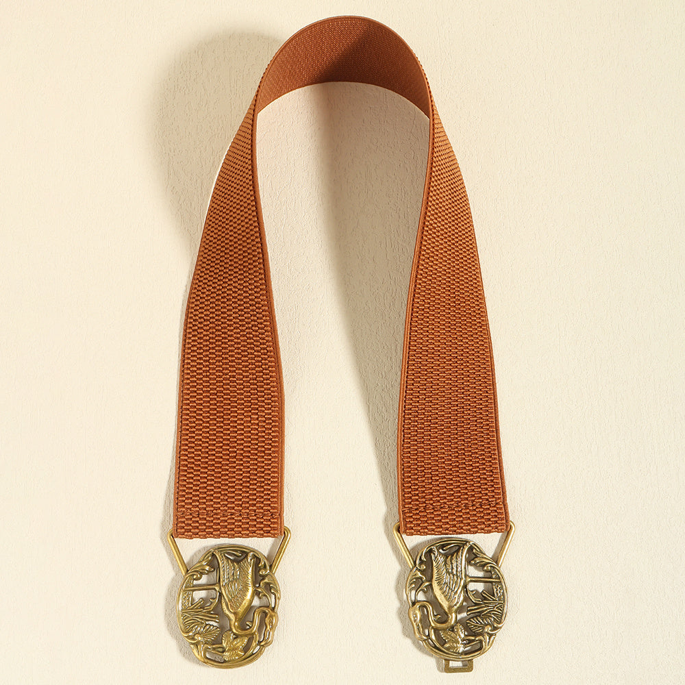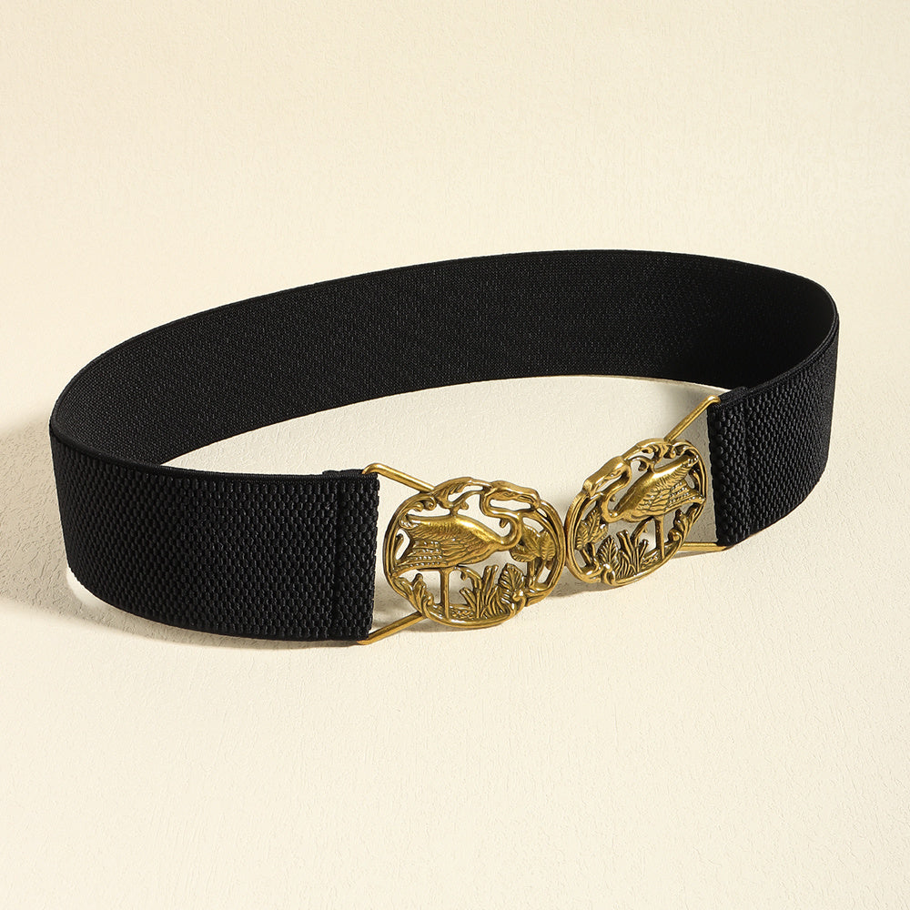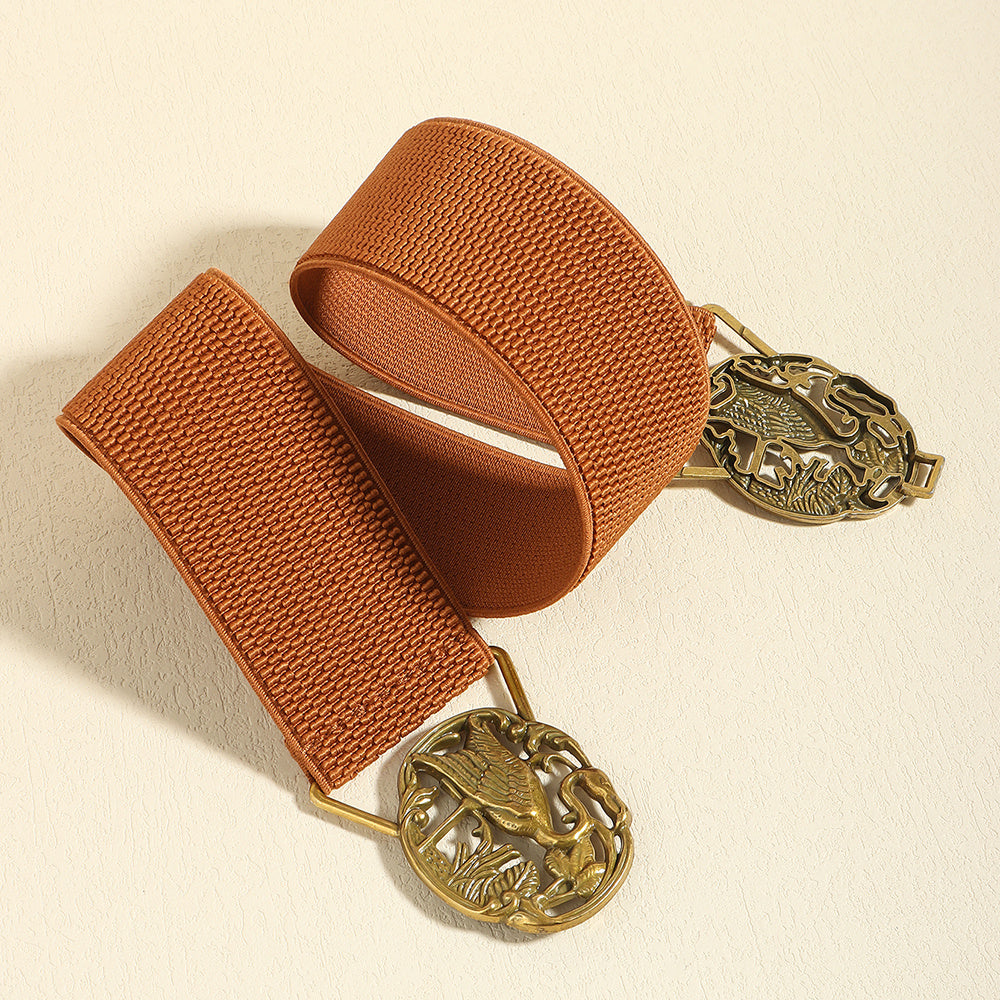 Simple Retro Elastic Belt, Metal Hollow Buckle, Red-crowned Crane Elastic Waist Elegant Female Fashion Accessories