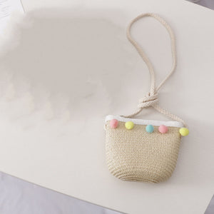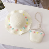 Small Ball, Solid Color, Children Straw, Hat Bag Set