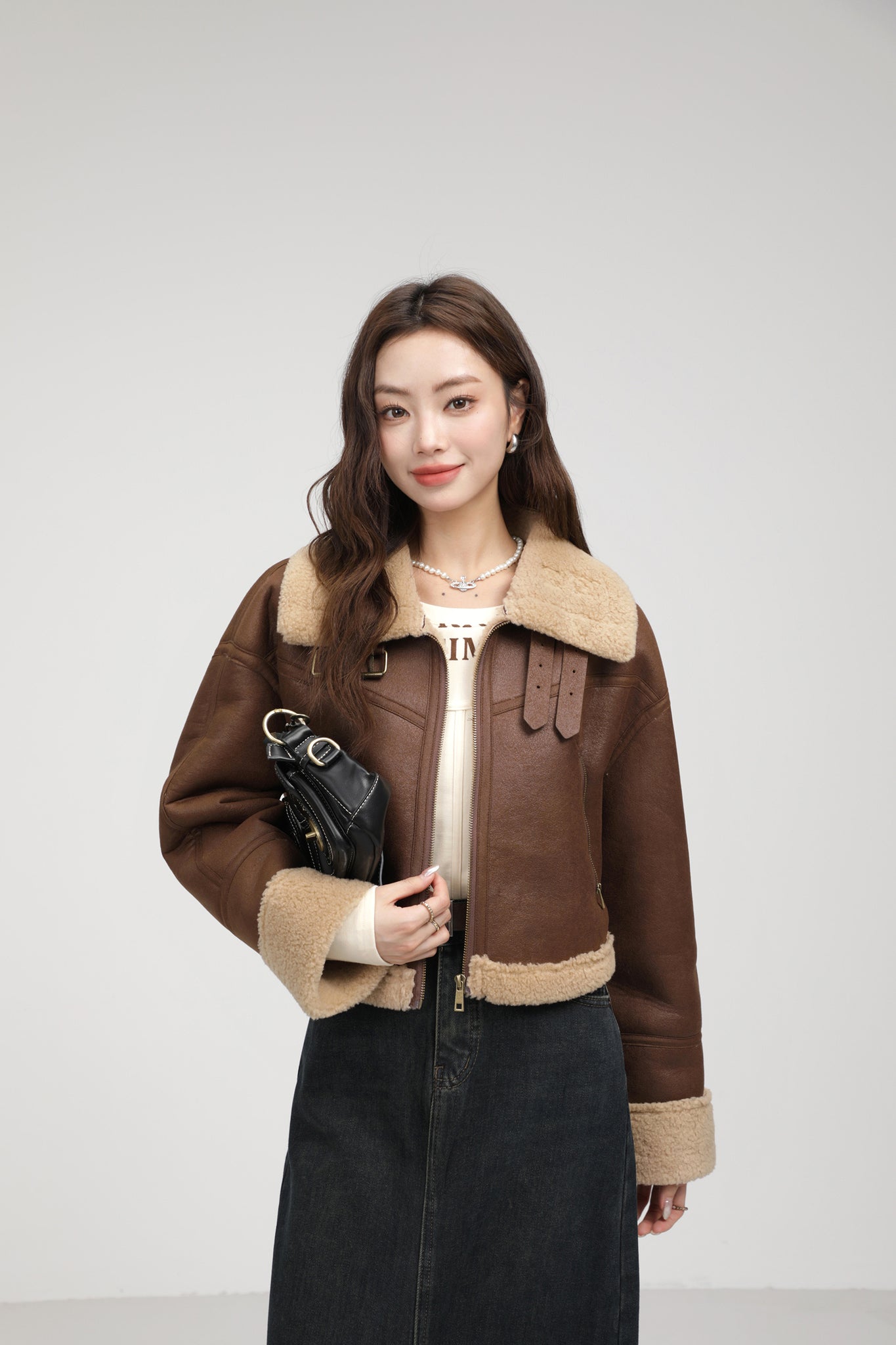 Stand Collar Integrated Lamb Fur Short Coat