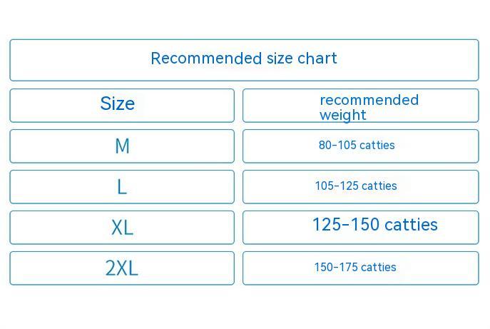 Size: M (recommended 40.00 kg-52.50 kg, L (recommended 52.50 kg-62.50 kg, XL (recommended 62.50 kg-75.00 kg, 2XL (recommended 75.00 kg-87.50 kg