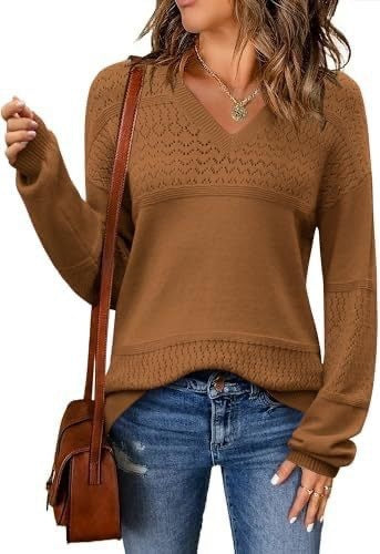 V-neck Hollow-out Pullover Knitted Rib Sweater