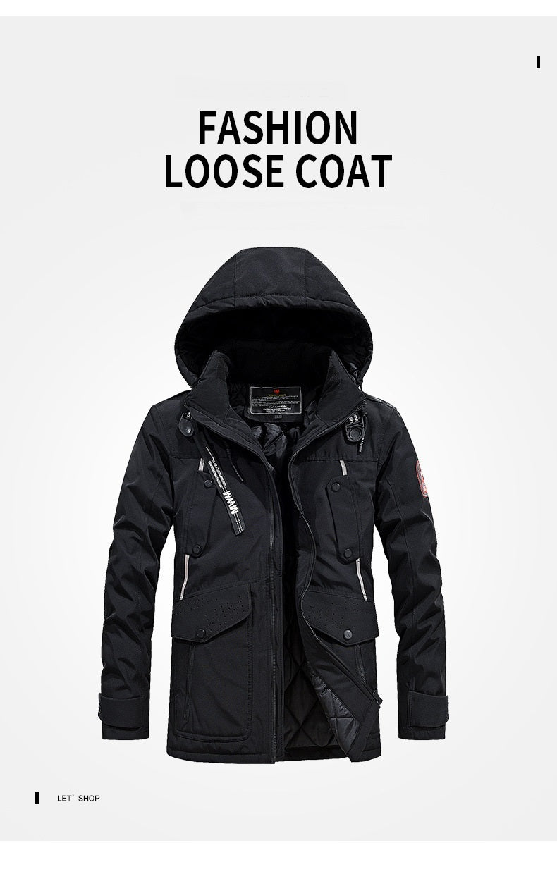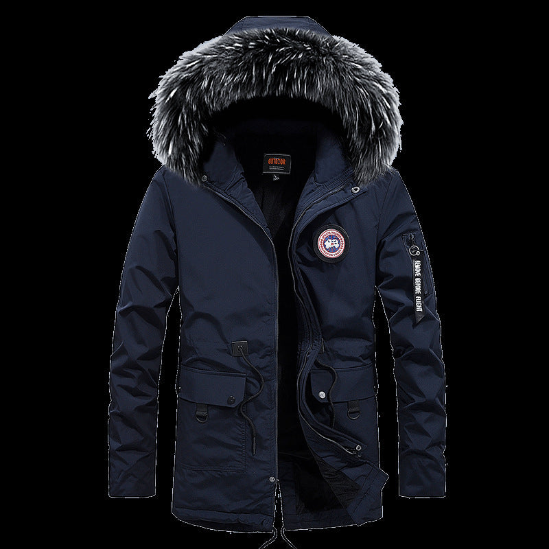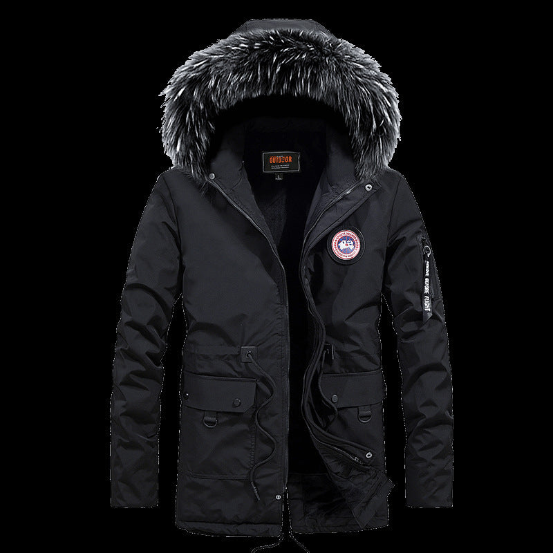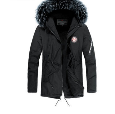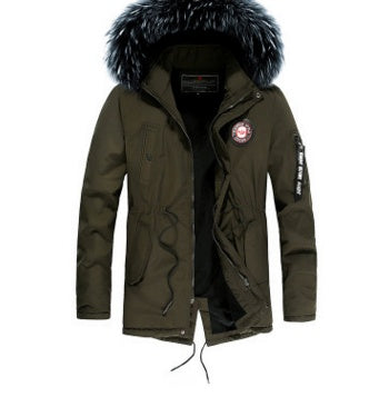 Winter New Warm Casual Men's Cotton Coat, Thick Long Hair Fur Collar Jacket