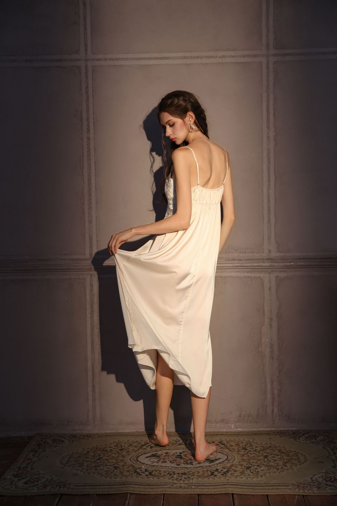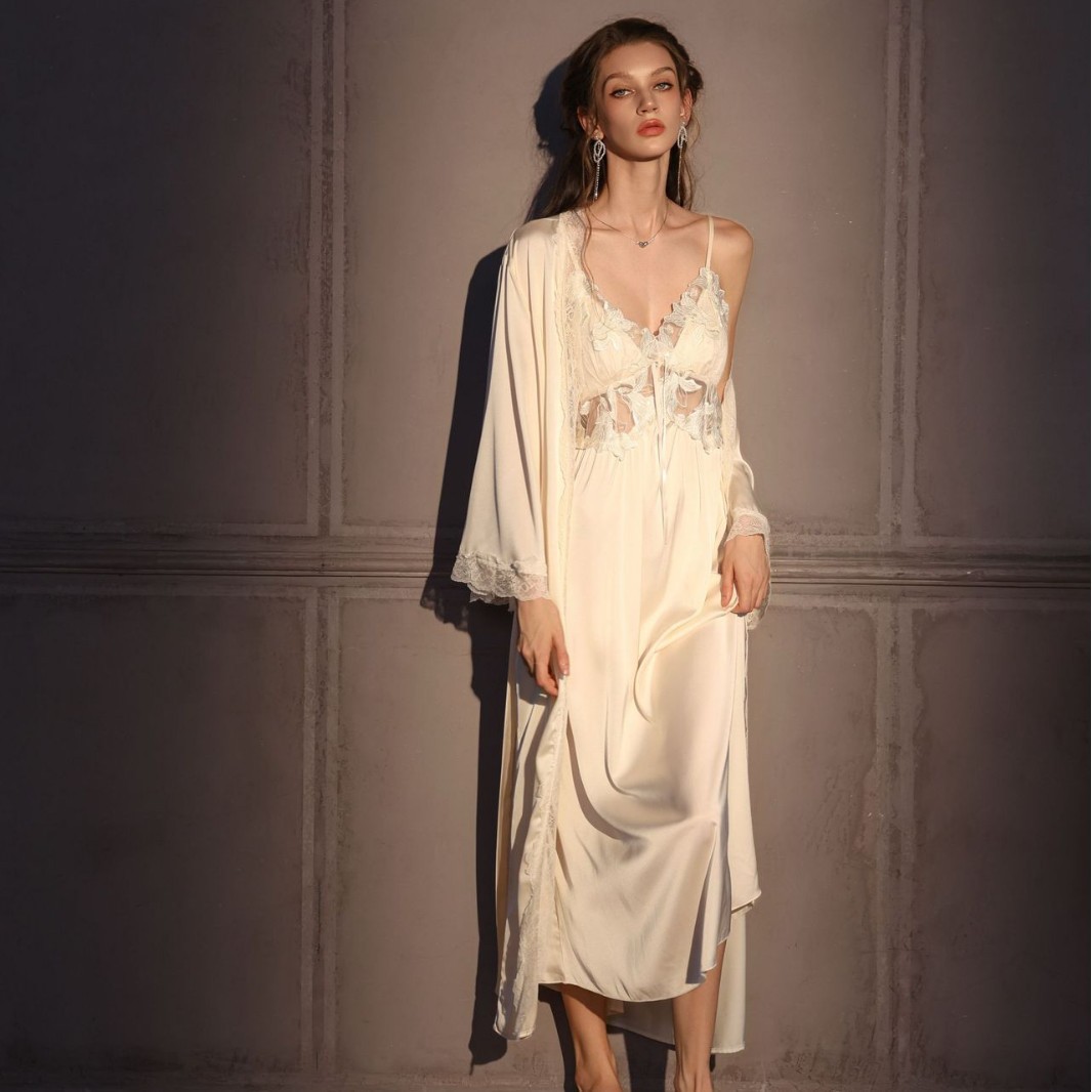 Colors: Milk Apricot Camisole, Light Purple Camisole, Milk Apricot Camisole + Nightgown, Light Purple Camisole + Nightgown