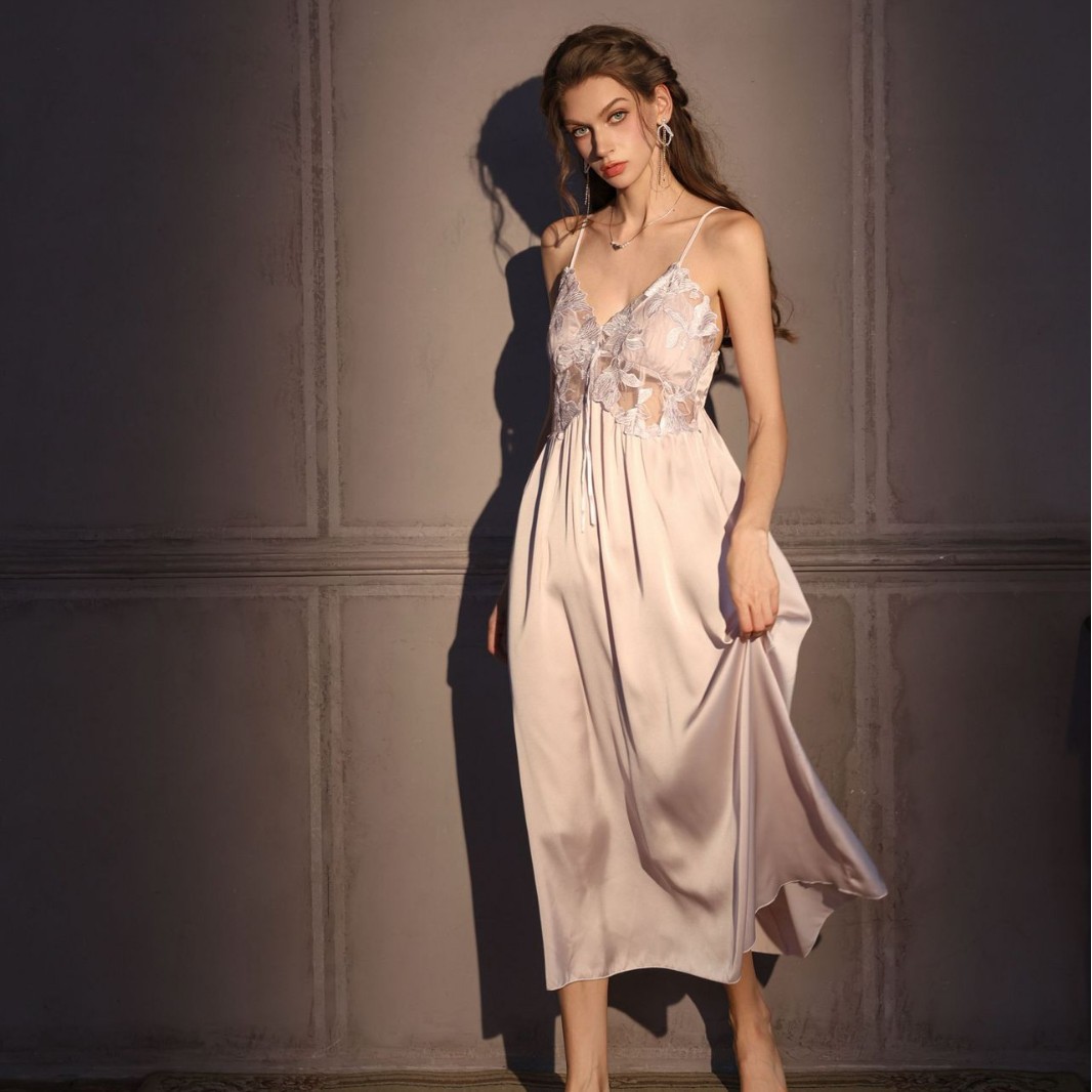 Women's Ice Silk Bra-padded French-style Camisole Nightdress