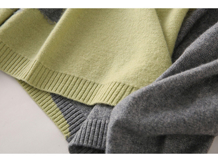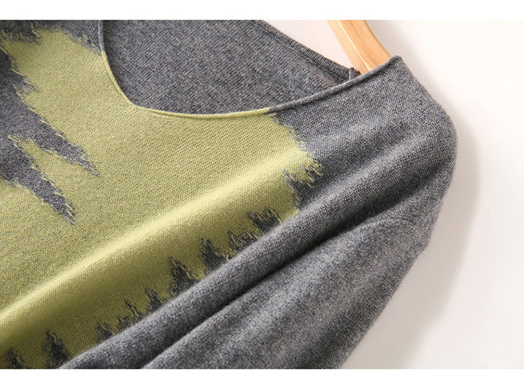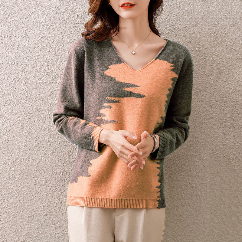 Women's Loose V-neck Short Pullover, Colorblock Sweater