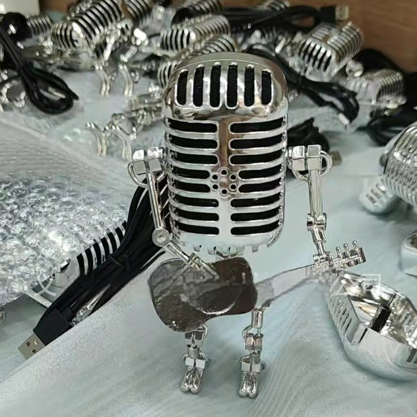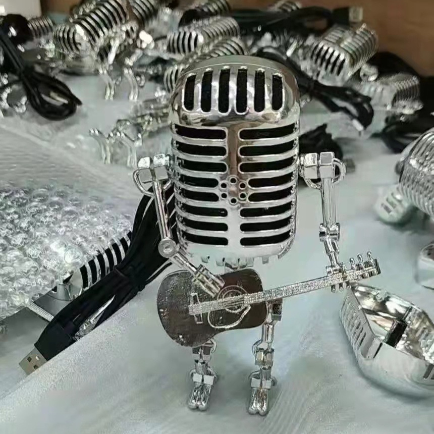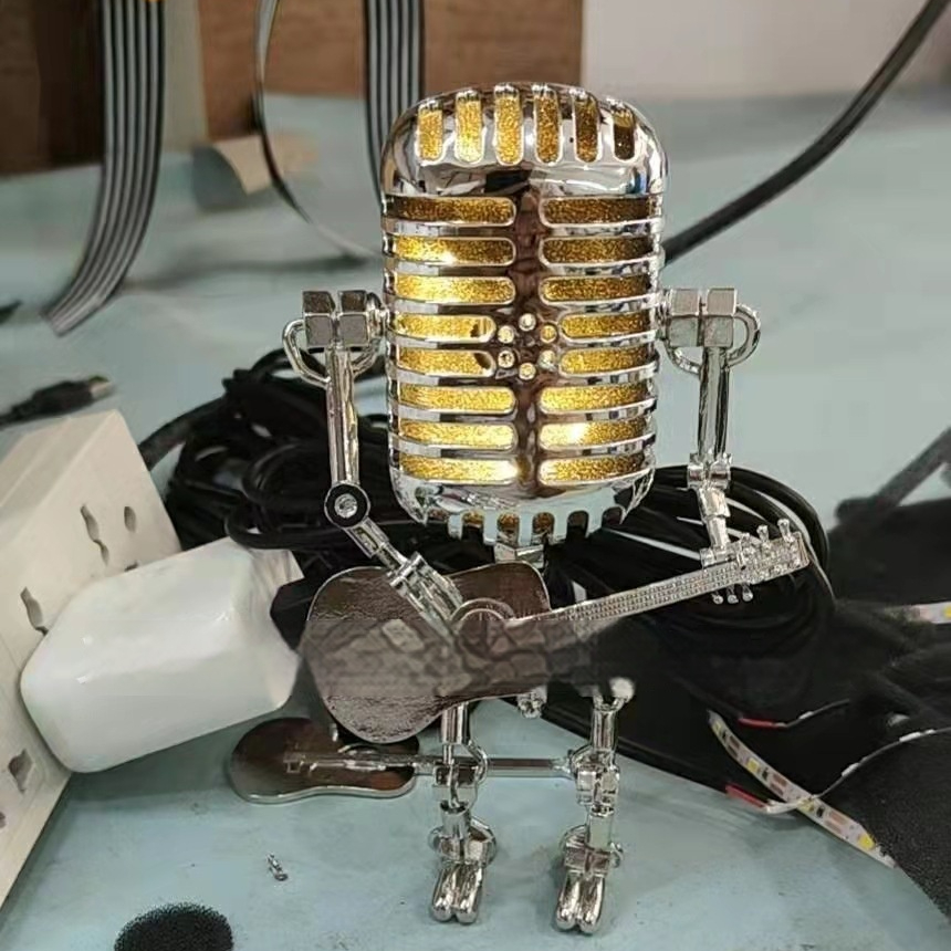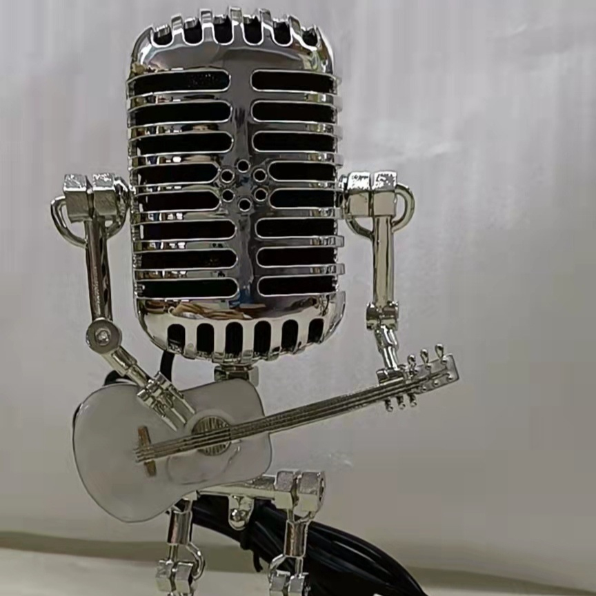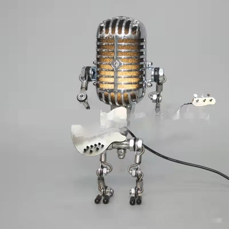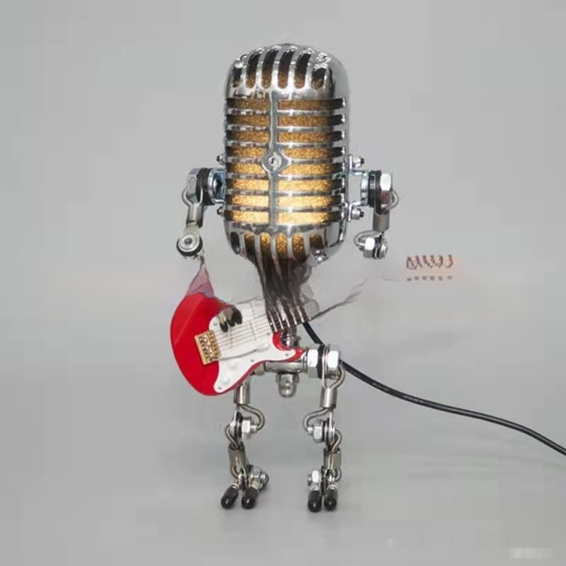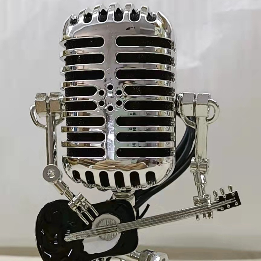 Metal Microphone with Guitar - Yagood Retro Aluminum Robot Sculpture Model